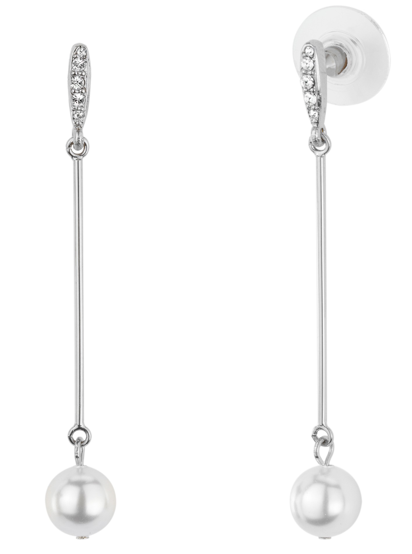 Traveller Drop earrings - Silver Coloured - Pearls - White - 8 mm - Crystals - Platinum Plated - 5 cm