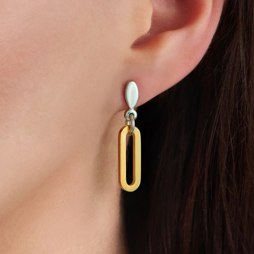 Traveller Drop Earrings - Stainless Steel - Bicolor - Silver Coloured & Gold Plated - Ovale Links - 20x7 mm