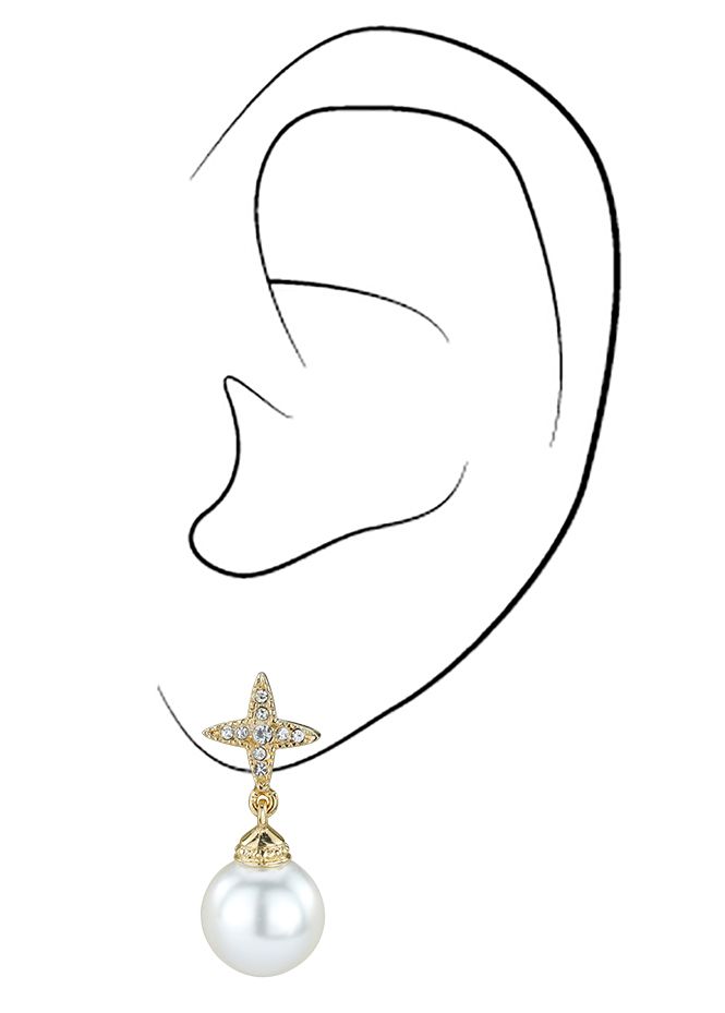Traveller Drop Earrings - Gold Plated - Cross - Pearls - White - 10mm - Crystals - 25 mm