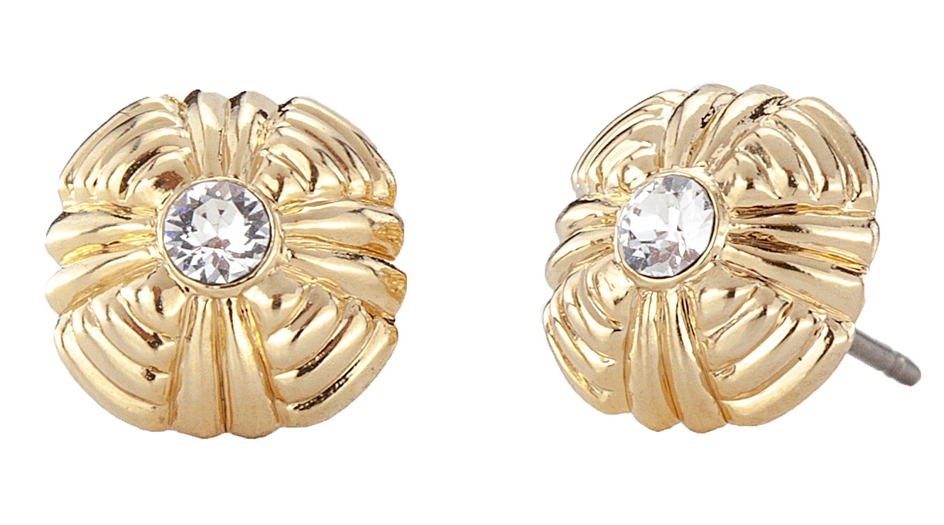 Traveller Stud Earrings - Gold Plated - Crystals - Flower - 10 mm