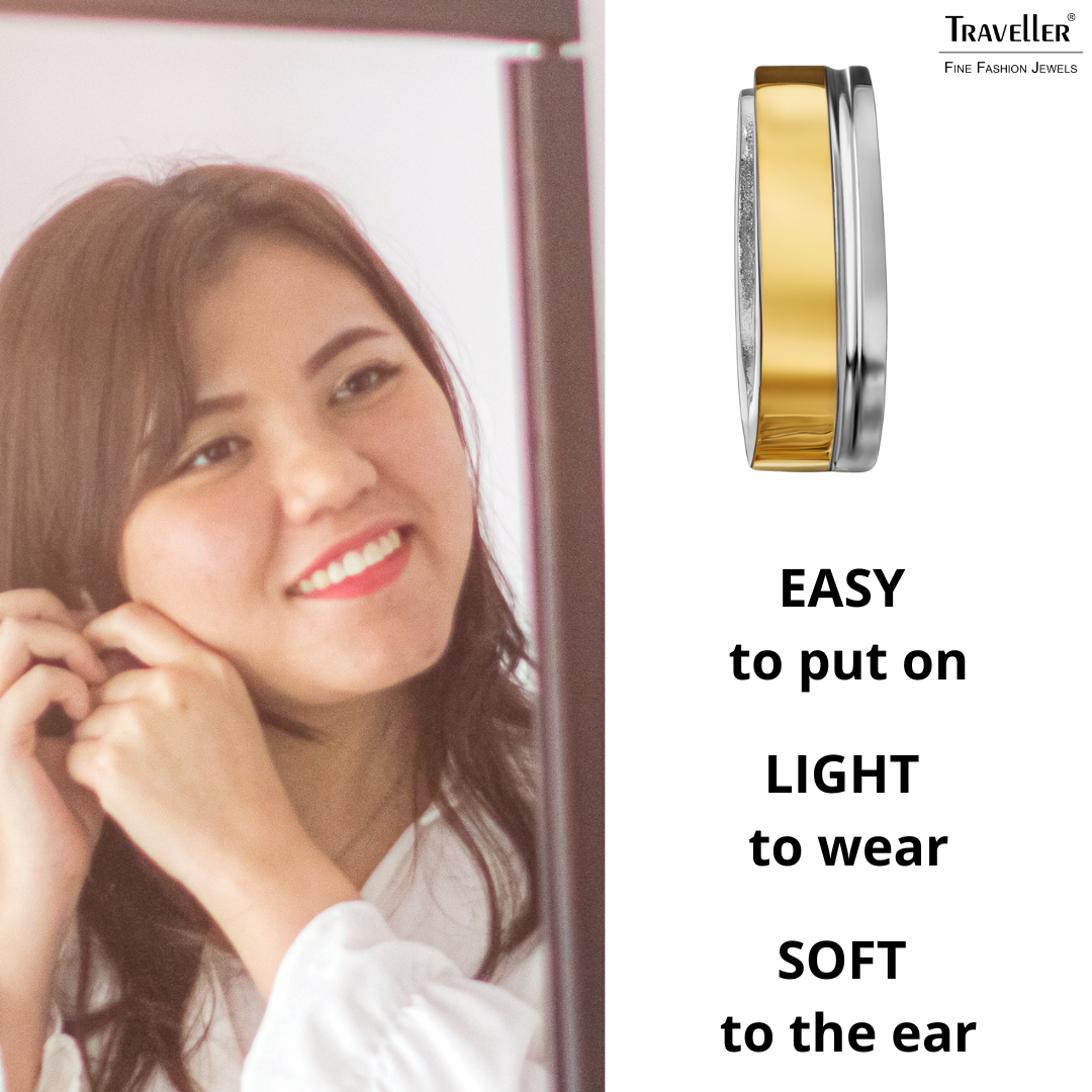Traveller Earrings - Hoop Earrings - Bicolor - Gold Plated - Ø13mm - Stainless Steel - Silver & Gold Coloured - 166345