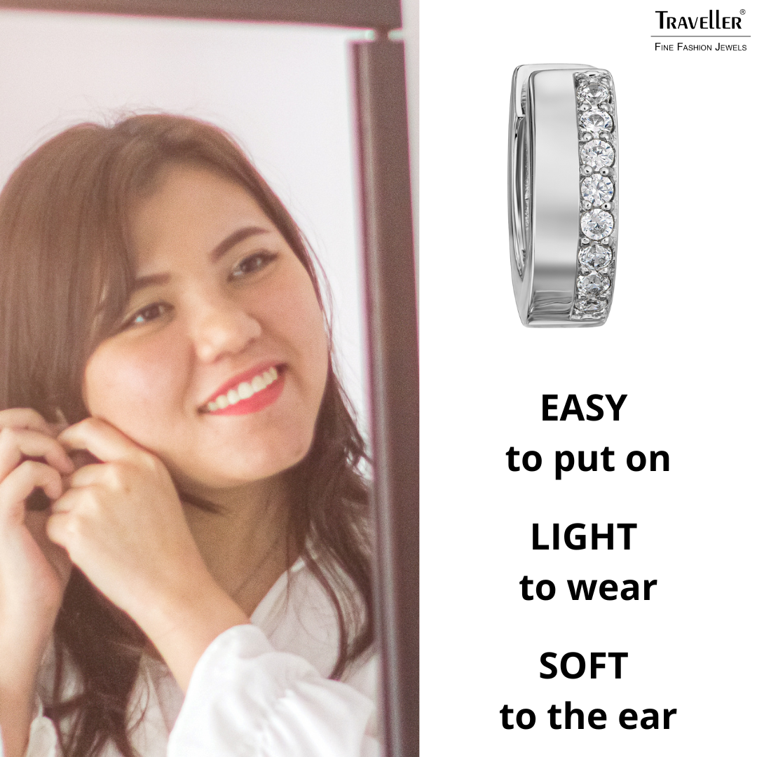 Traveller Earrings- Hoop Earrings - Silver Coloured - Zirconia - Ø 16 mm - Stainless Steel - 166351