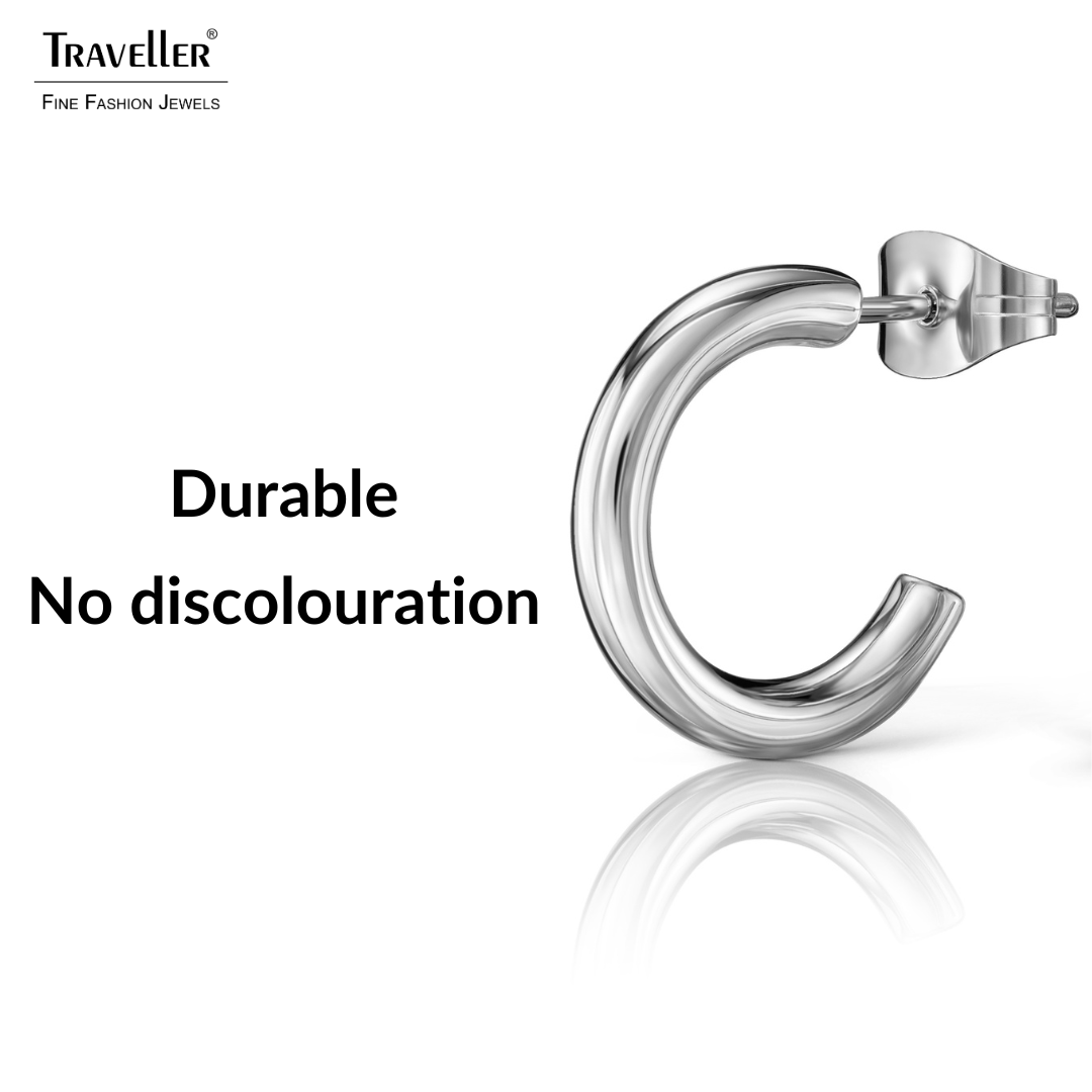 These classic hoop earrings from Traveller go with everything, making them a great addition to your hoop earring collection. The earrings are made of stainless steel, have a diameter of 15 millimetres and weigh just 1 gram each. The traditional closing makes the earrings stable and comfortable to wear.