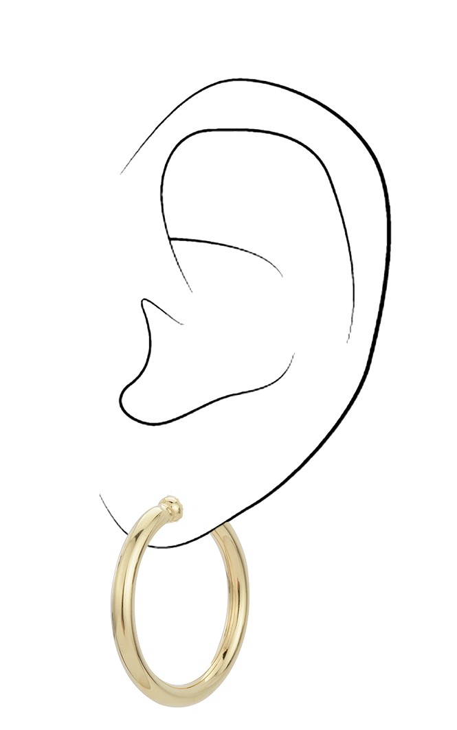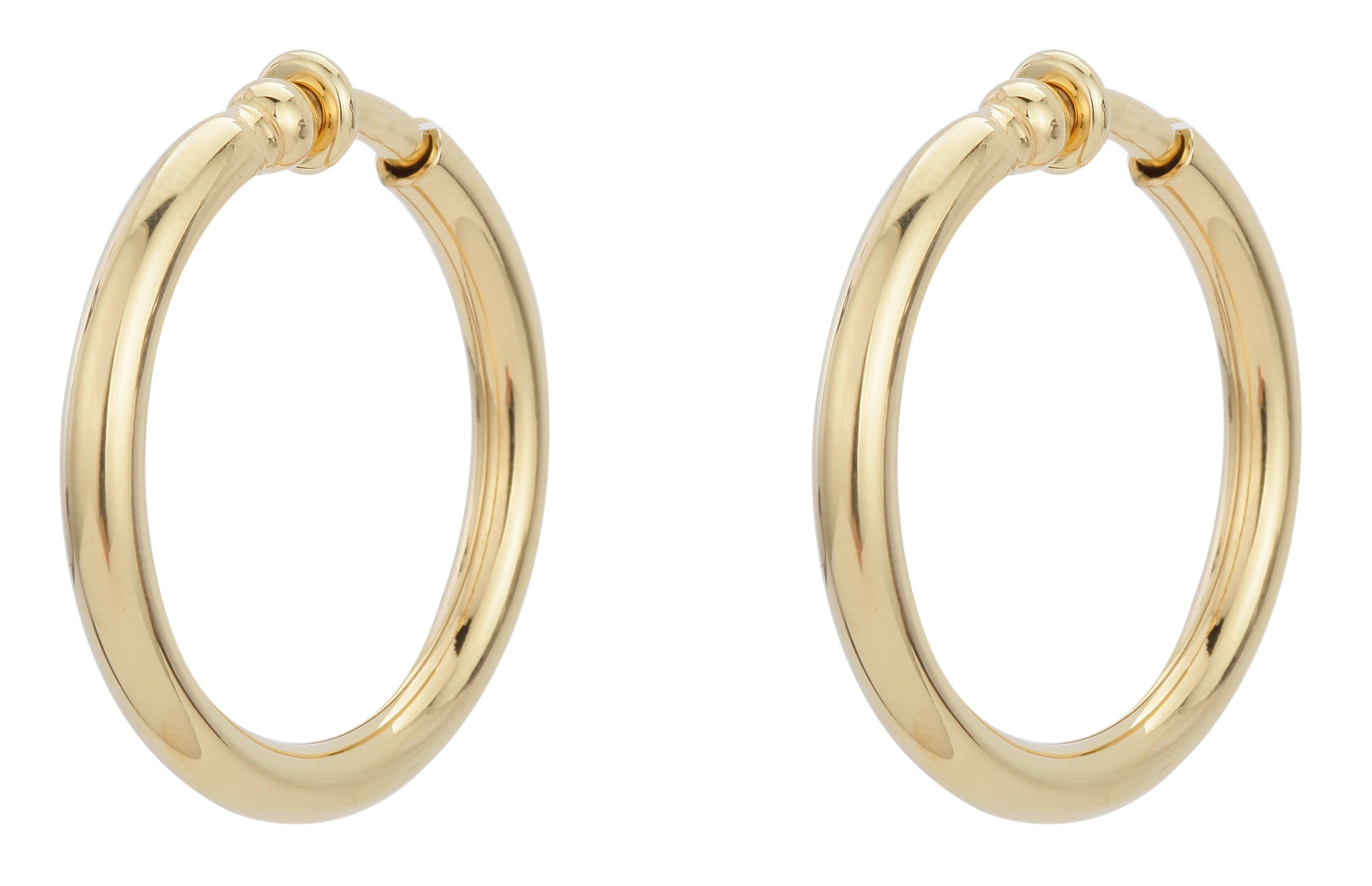 Hoop earrings have been a fashion icon for years! They are stylishly playful and match any outfit. These clip-on hoop earrings from Traveller are specially designed for anyone without pierced ears. The clip-on earrings are fully gold plated with 22 carat gold, have a diameter of 33 millimetres, a width of 4 millimetres and weigh 6 grams each.
