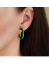 Traveller Clip-on Earrings - Hoop Earrings - Gold Plated 22ct - Green Resin - 25 mm