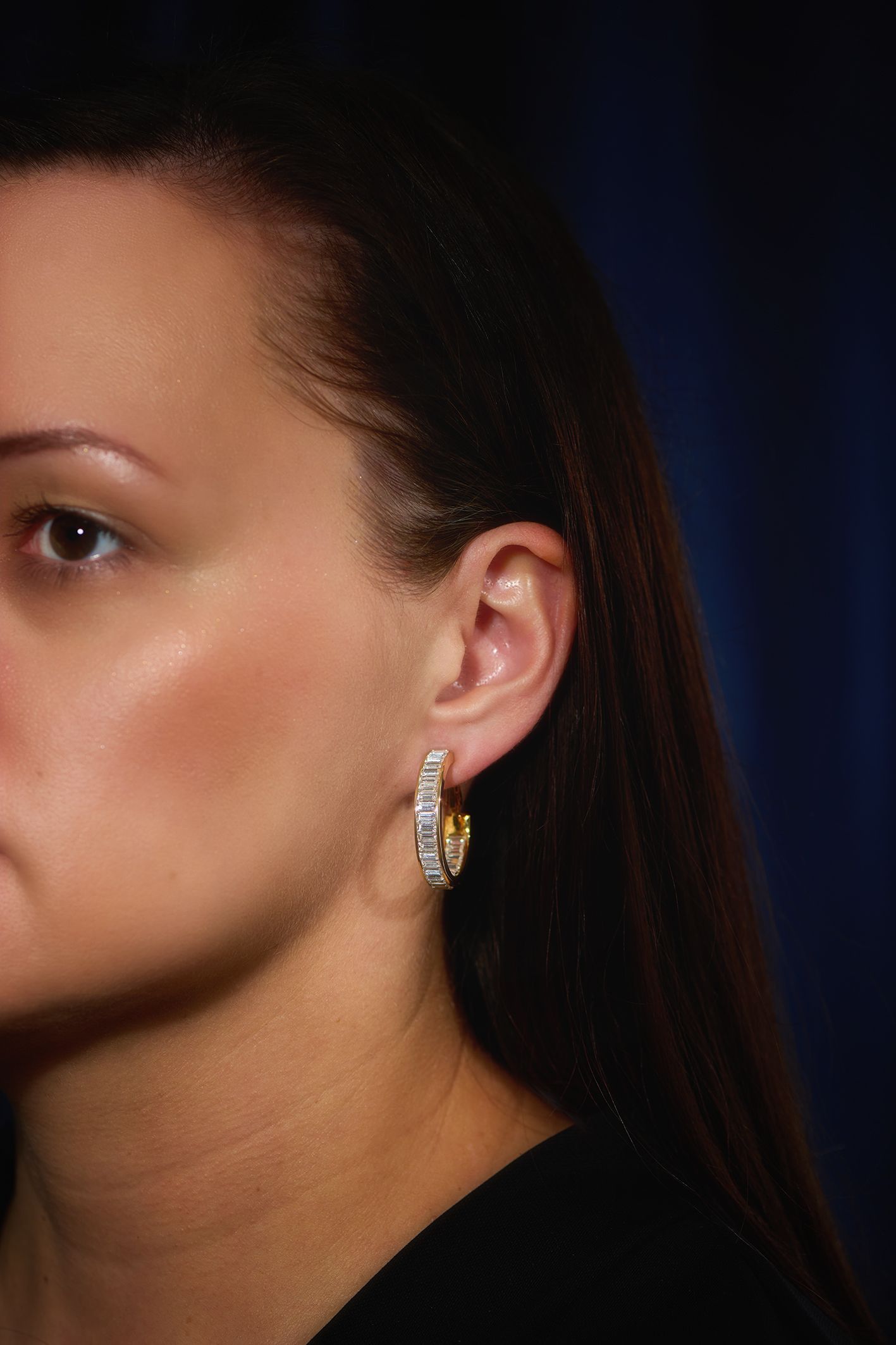Hoop earrings have been an icon in the fashion world for years; these are specially designed by Traveller for people without piered ear. The sparkling clip-on earrings are fully gold plated with 22 carat gold (core material: metal) and encrusted with gorgeous Preciosa crystals. The earrings have a diameter of 30 millimetres, a width of 6 millimetres and weigh 6.5 grams each. Thanks to Traveller's unique fastening system, these earrings are comfortable, light and safe to wear.