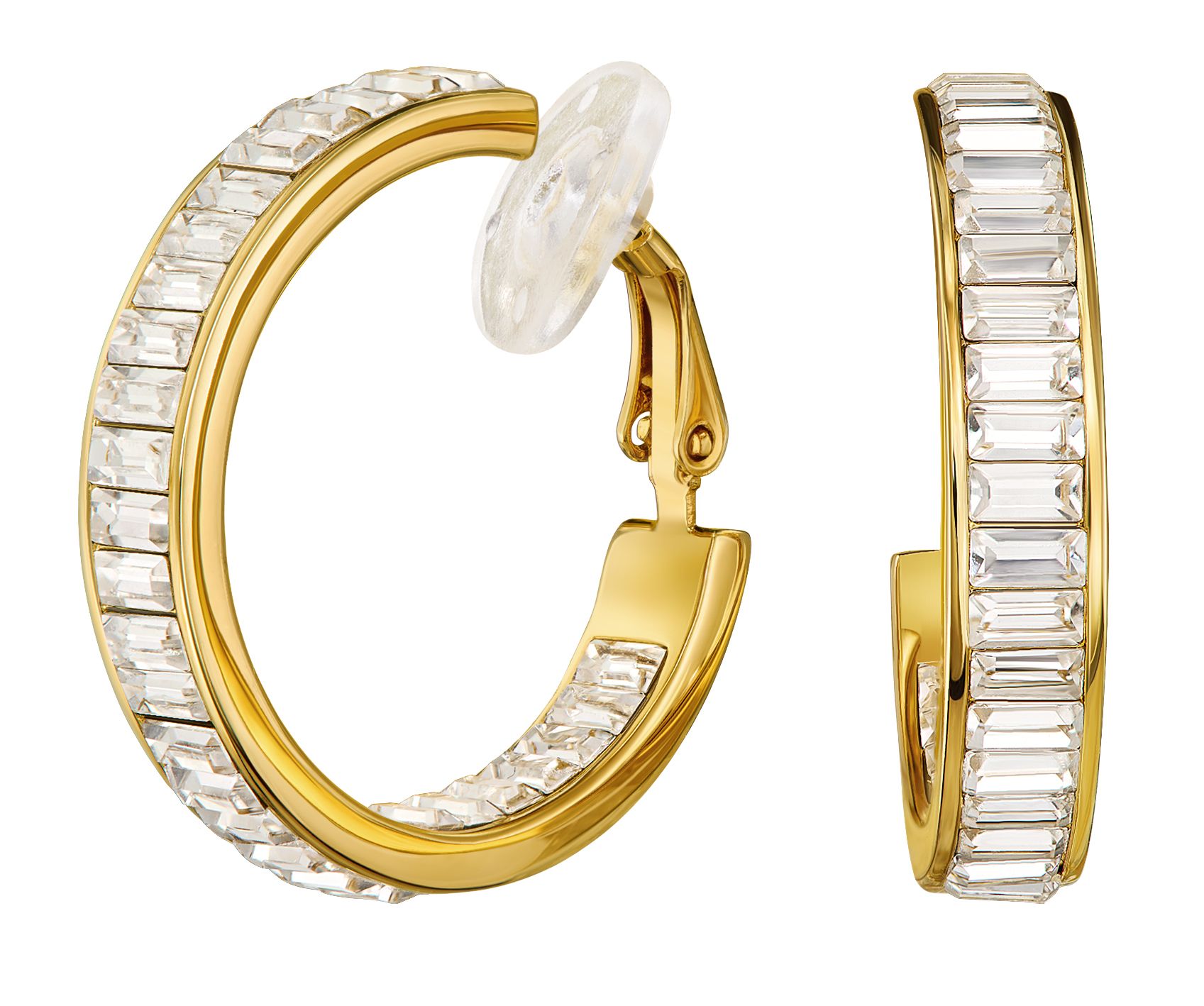 Traveller Clip-on Earrings - Hoops - 22ct Gold Plated - Crystals - Ø 30mm