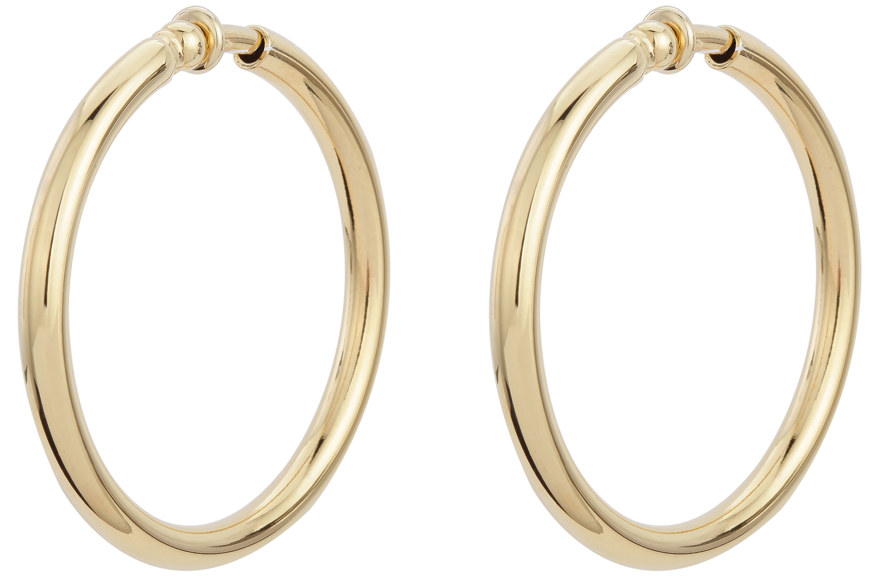 If there is one piece of jewellery that is timeless, it is the hoop earring. For centuries, they have been worn by different cultures. These 22 carat gold plated (core material: metal) hoop clip-on earrings from Traveller are made especially for anyone who wears clip-on earrings. The earrings have a diameter of 50 millimetres, are 4 millimetres thick and weigh 9 grams each.