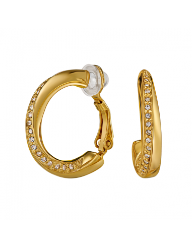 Traveller Clip-on Earrings - Hoops - Gold Plated - Crystals - 20 x 4 mm