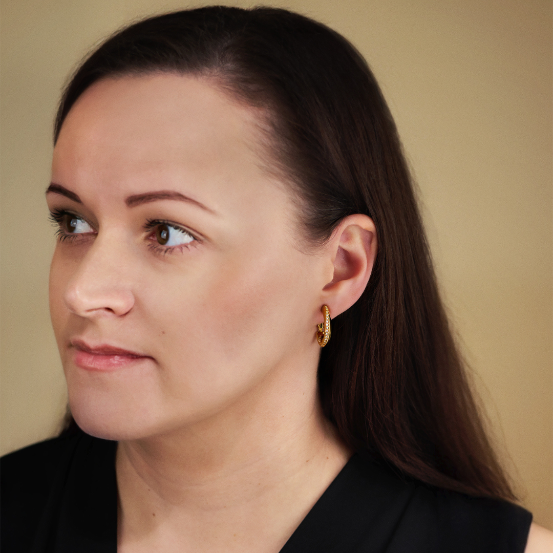 These hoop earrings from Traveller are subtle yet striking. The gold plated clip-on earrings are shaped like a hoop, with a band of Preciosa Crystals running playfully over them. The clip-on earrings have a diameter of 20 millimetres, are 4 millimetres wide and weigh 4 grams each. Thanks to Traveller's unique fastening system, these clip-on earrings are very comfortable, light and safe to wear.