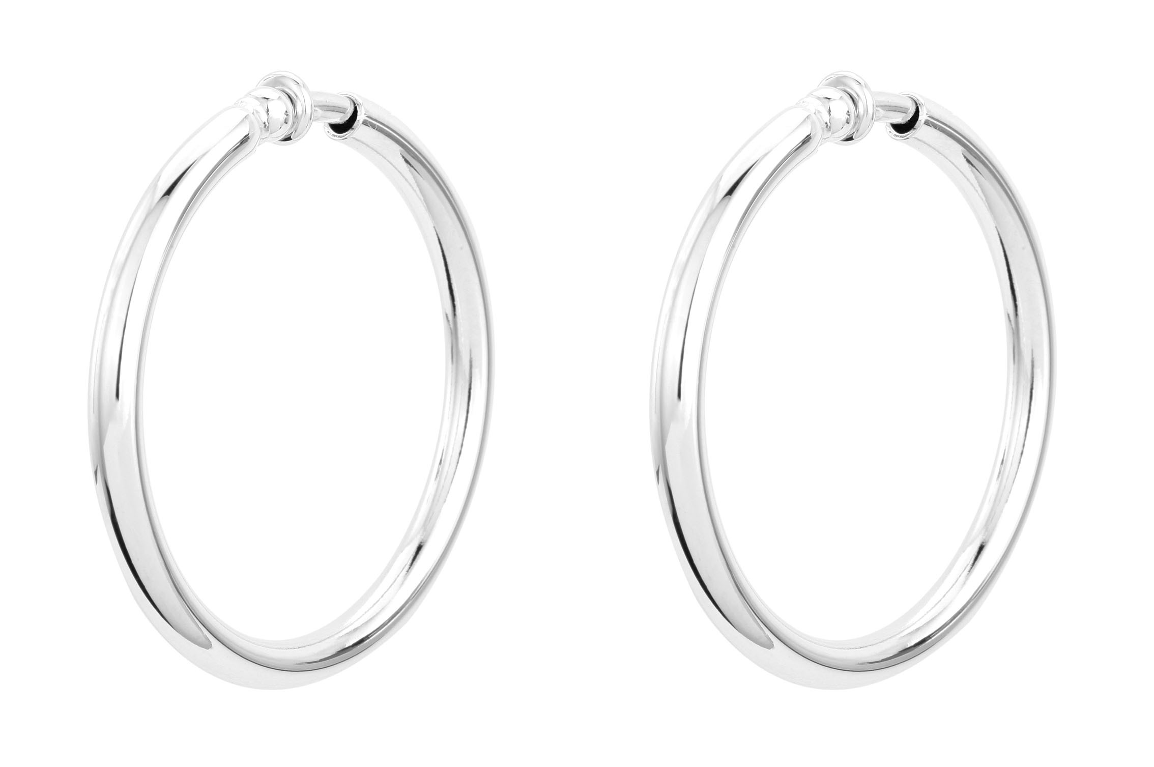 Traveller Clip-on Earrings- Hoops - Platinum plated - Silver-coloured - 45 mm