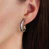 What beautiful Traveller hoop earrings! Their unique design makes them truly special. These platinum plated clip-on earrings consist of three distinct components: an outer band inlaid with sparkling Preciosa crystals, a glossy silver colored center band, and a shiny dark blue enamel band on the inner side. The clip-on earrings are 23 millimeters in diameter, 4 millimeters wide, and weigh just 2.7 grams each. Thanks to Traveller's unique fastening system, our clip-on earrings are comfortable, light and safe to wear.