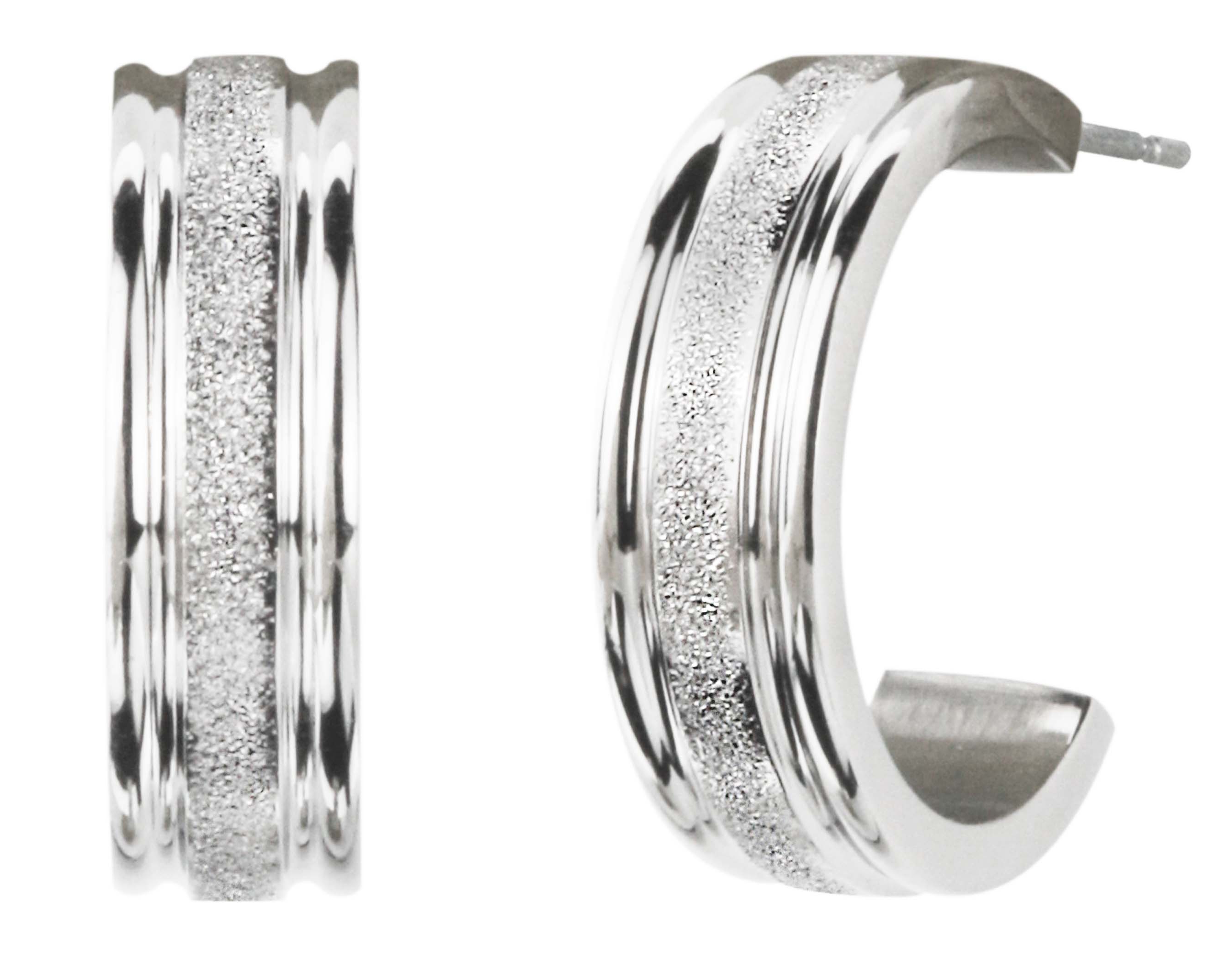 Traveller Hoop Earrings - Silver Coloured - Stainless steel - Shiny - Glitter effect - Ø 20mm