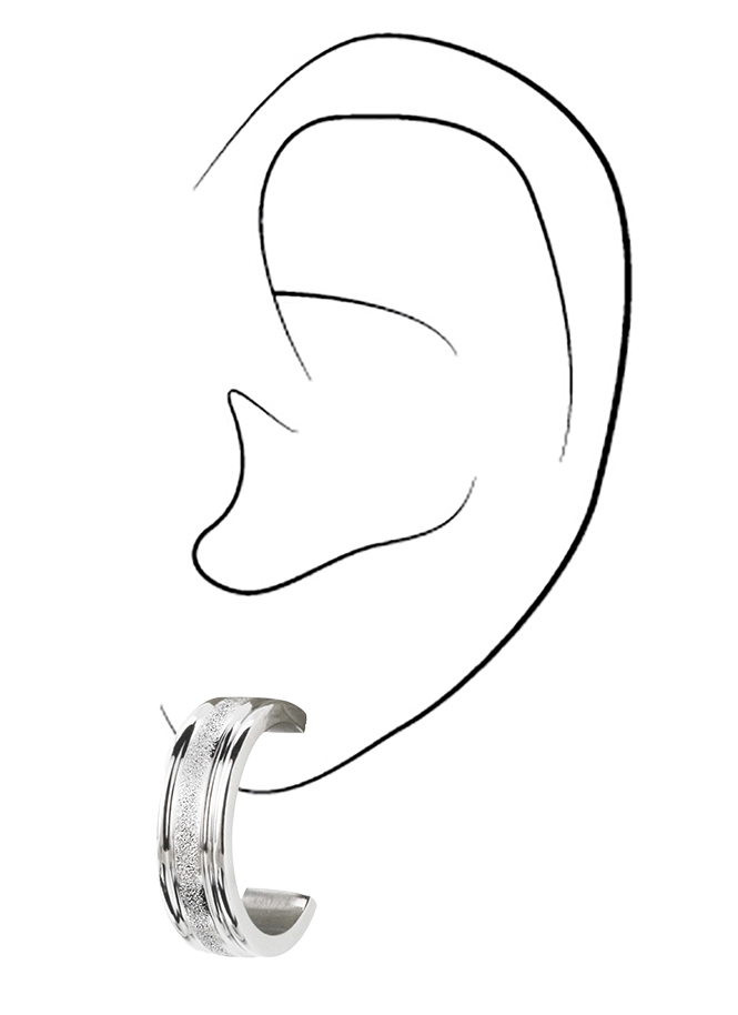 The glitter effect makes these classic hoop earrings from Traveller a unique piece of jewellery. A strip of subtle glitter is applied to the centre of the silver coloured earrings. The stainless steel earrings have a diameter of 20 millimetres and are 6 millimetres wide.