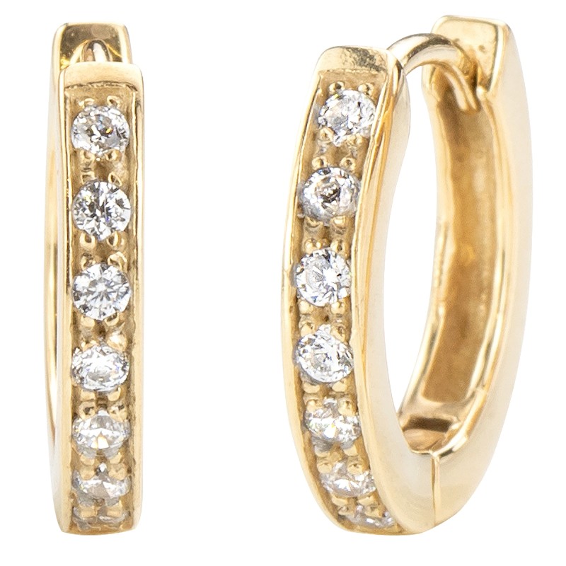 Traveller Hoop earrings - Stainless Steel - Gold Plated - Zirconia - 14 mm