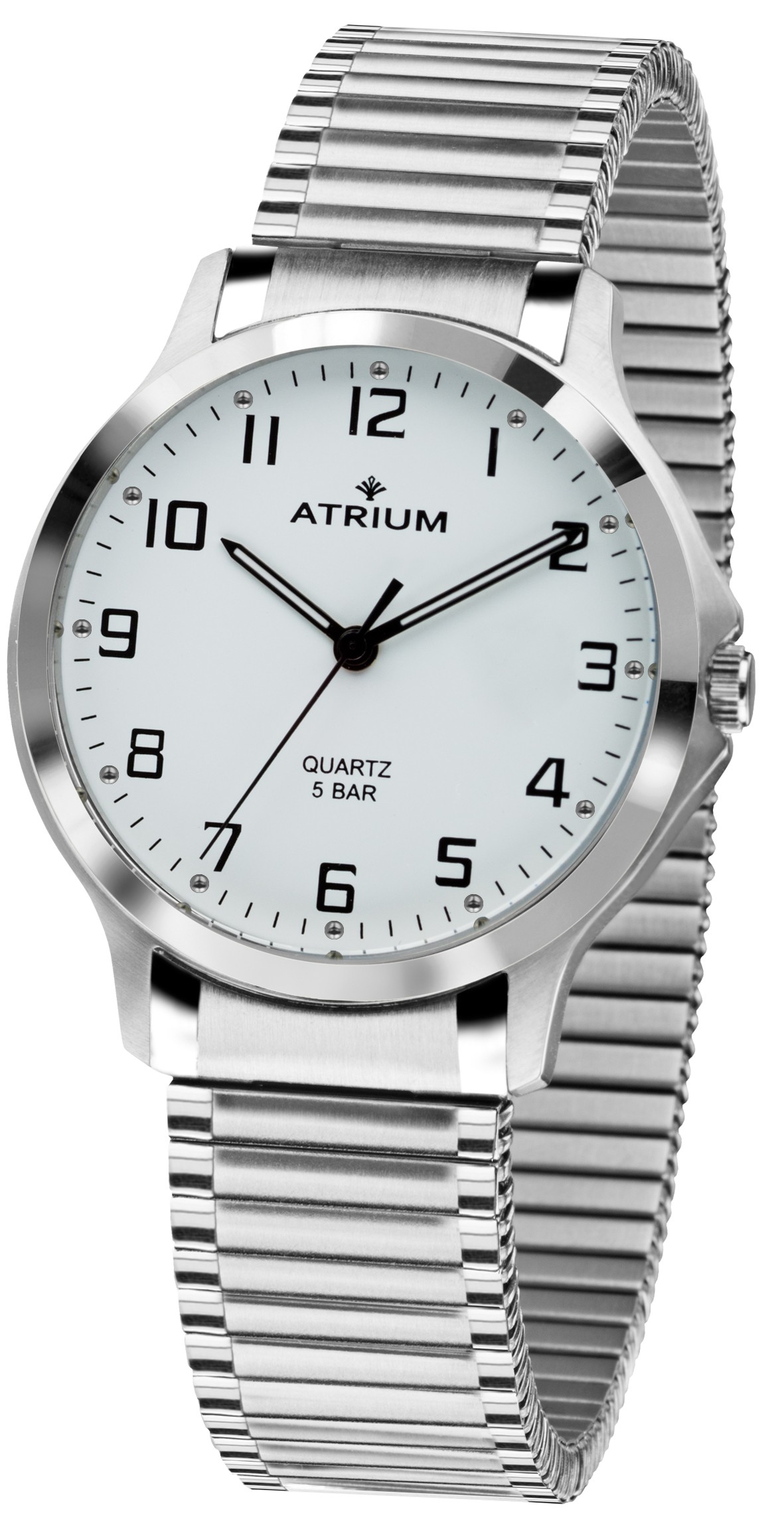 This timeless watch from ATRIUM not only displays the date, but can also be worn by many people. This is thanks to the stretch strap, which can also be shortened. This strap is made of stainless steel and measures 19.5 centimetres, but as it is a stretch strap, this size is flexible and be shortened. The watch case is also made of stainless steel and protects the crown. Finally, the watch is 5 bar water resistant, which means it is splash and rain proof, and you can wash your hands and take a bath with it (you can't take a shower).