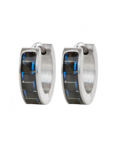 Traveller Earrings - Hoops - Men - Stainless Steel - Black Carbon - Blue - 14x4 mm