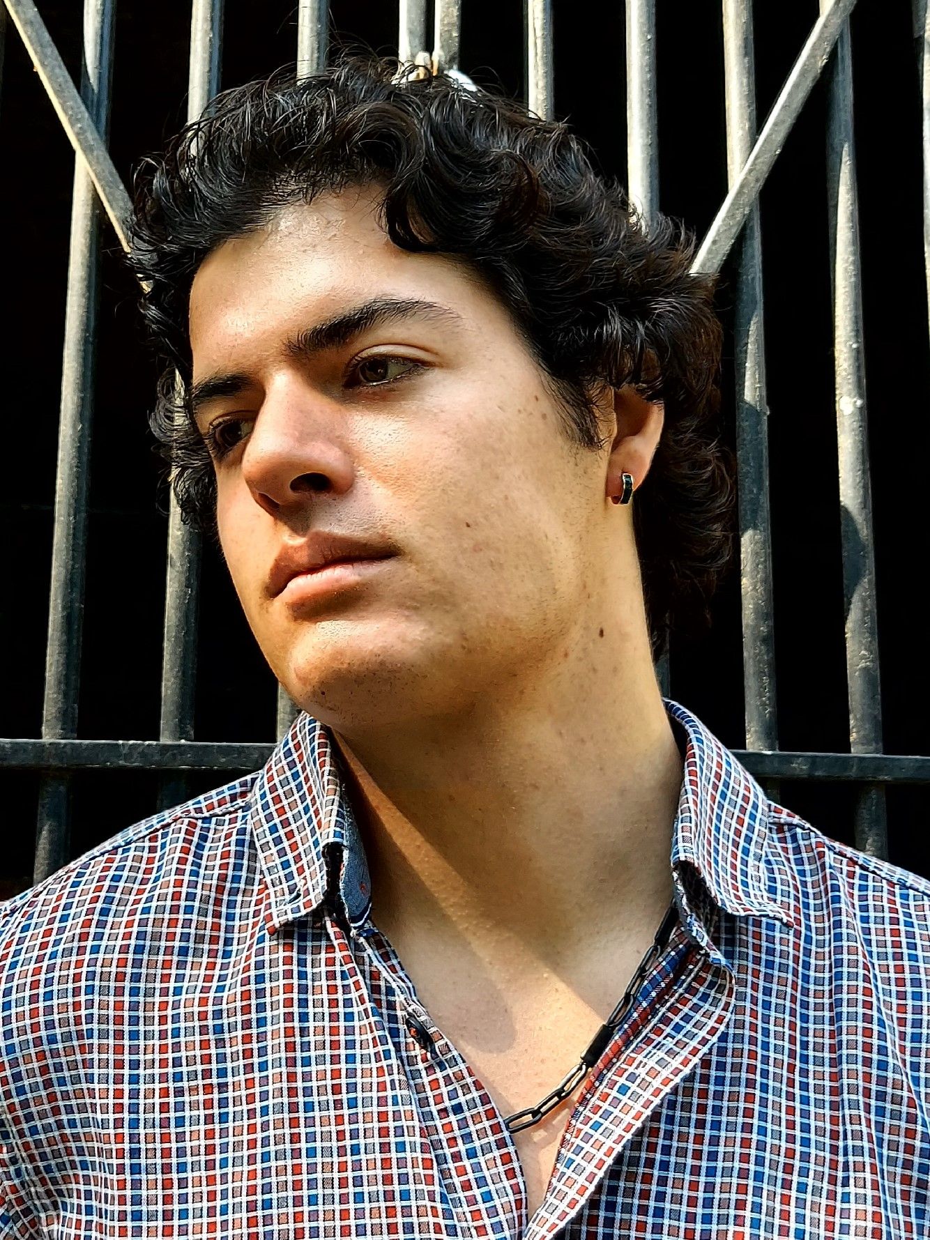 Traveller Hoop Earrings - Men - Stainless Steel - Gold Plated - Carbon - Balck / Grey - Ø 14mm