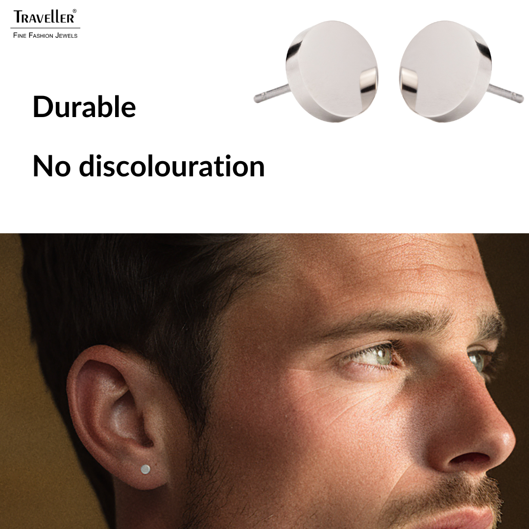 Traveller Stud Earrings - Men - Stainless Steel - Shiny - Ø 8mm - Silver Coloured
