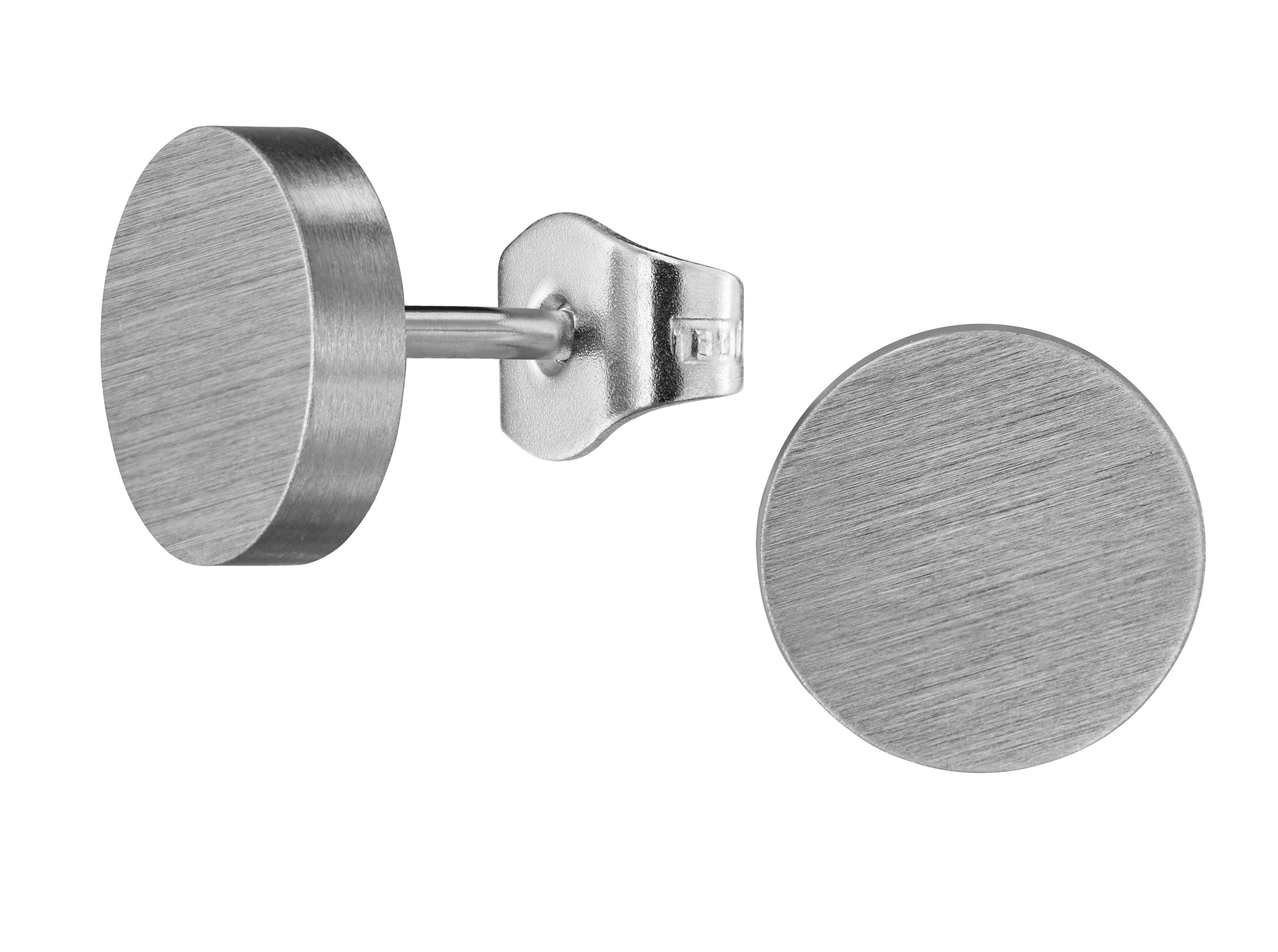 Traveller Stud Earrings - Men - Stainless Steel - Silver Coloured - Matt - Round - 8 mm