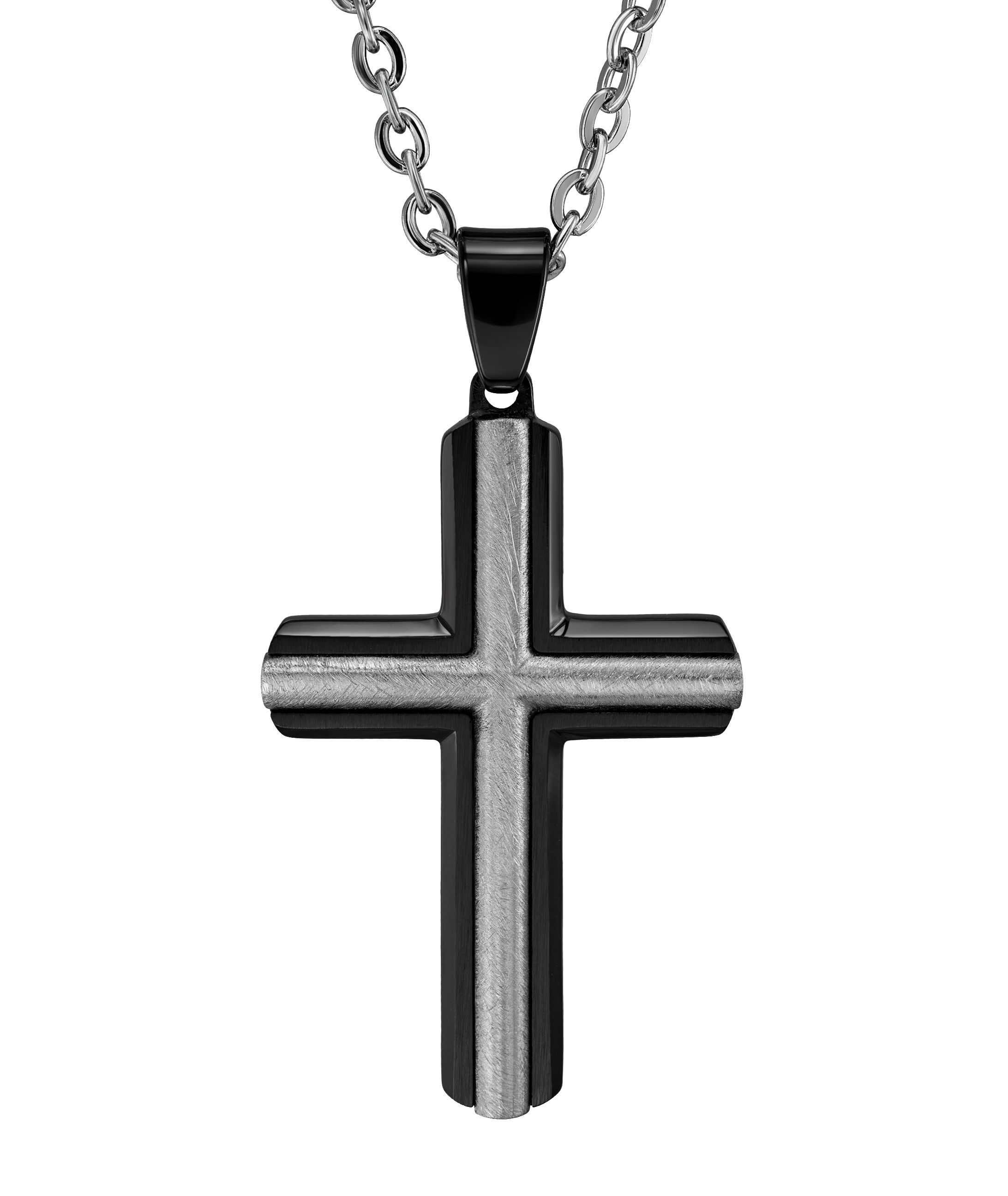 Traveller Cross Chain - Men - Necklace Men - Made in Germany - Carbon & Stainless Steel - Cross 41x30x5mm - 50cm long €129.00