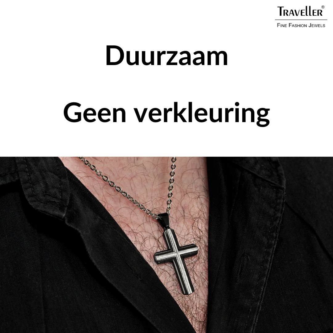 Traveller Cross Chain - Men - Necklce Man - Made in Germany - Carbon & Stainless Steel - 3x2cm - 50cm €59.50
