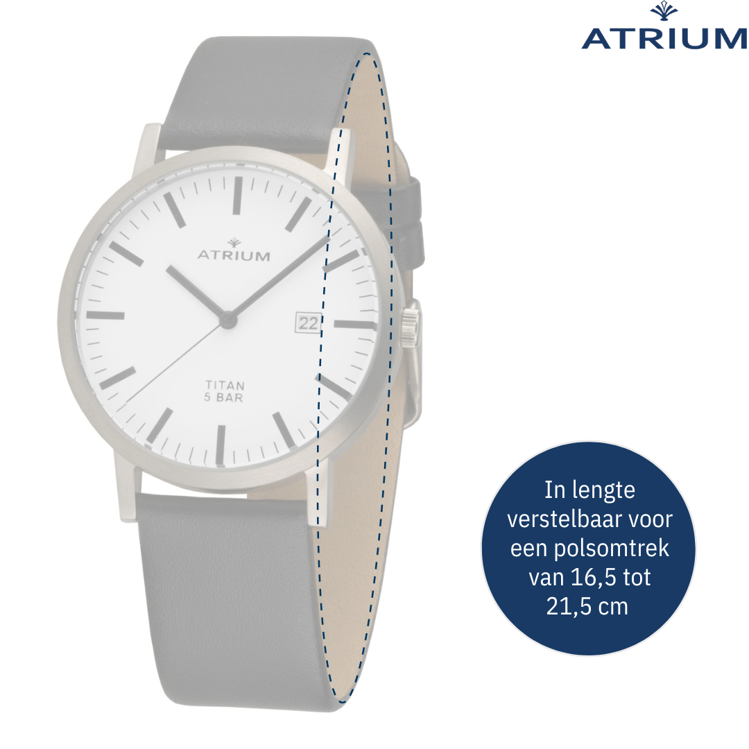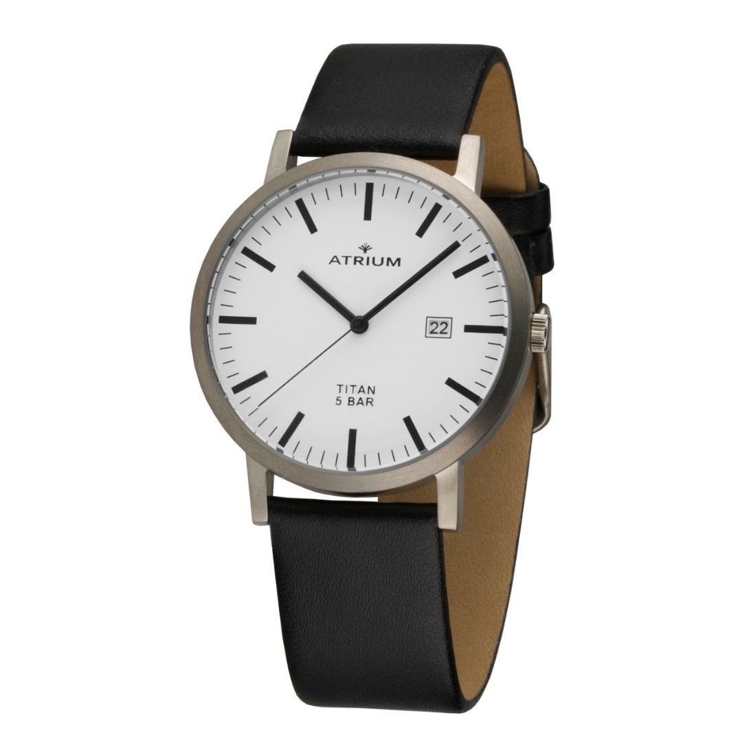 ATRIUM men's wristwatch - Black leather strap - White dial - Date - Titanium - 5 bar - A40-13