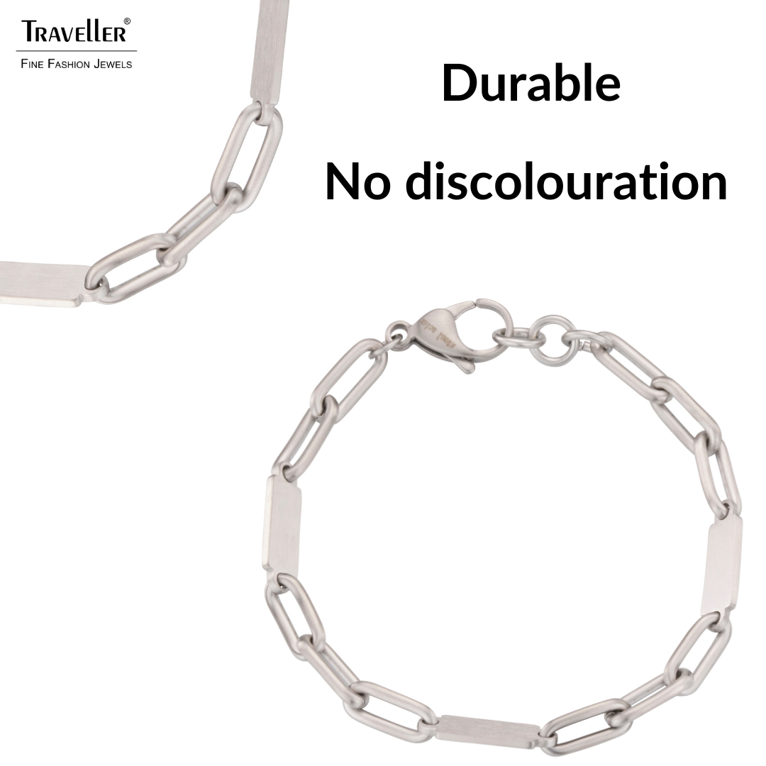 Traveller Bracelet - Men - Stainless Steel - Silver Coloured - Matt - Links - Opened and Closed - 22cm - 181243