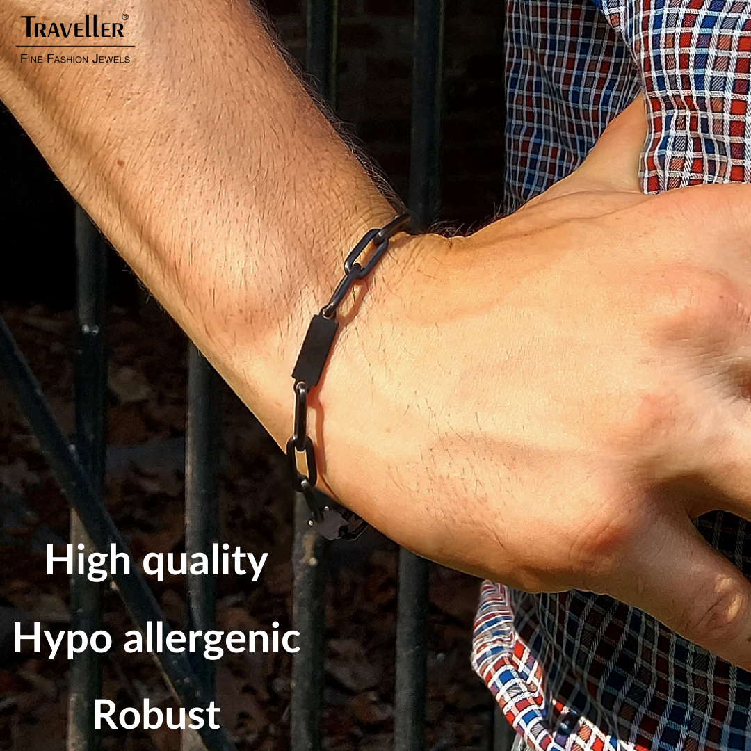 Traveller Bracelet Men - Stainless Steel - Black - Matt - Links - 22cm - 181245