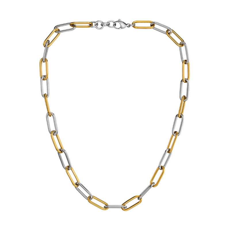 Traveller Necklace - Bicolour - Gold & Silver - Links - Stainless Steel - Gold Plated - 46 cm