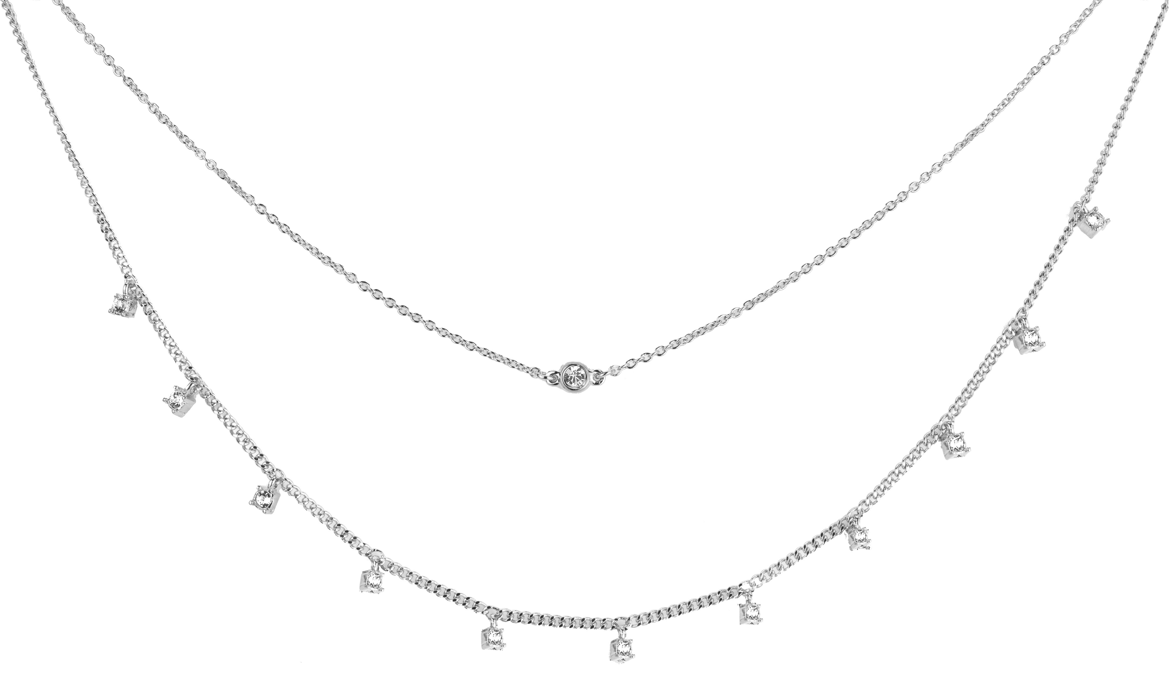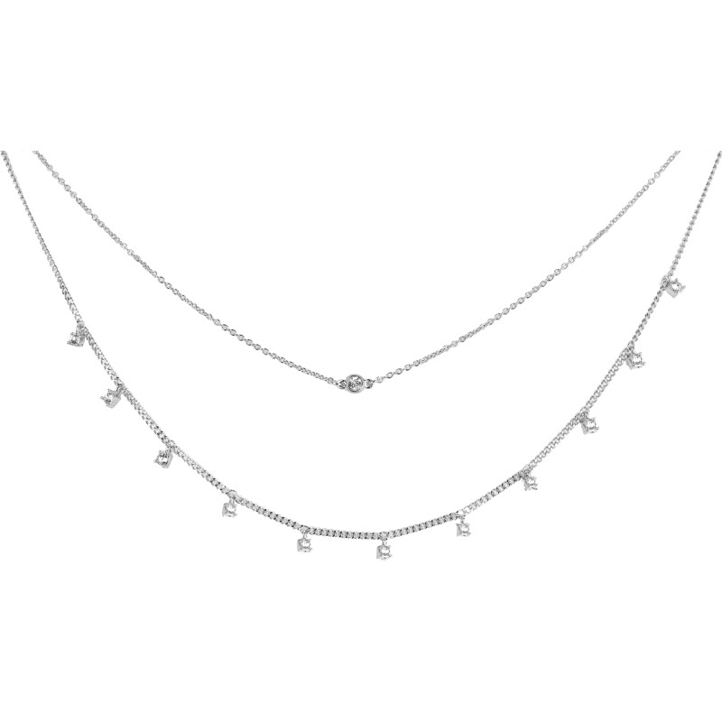 Traveller Necklace - Silver Coloured - Swarovski Crystals - Platinum Plated - 40+5cm
