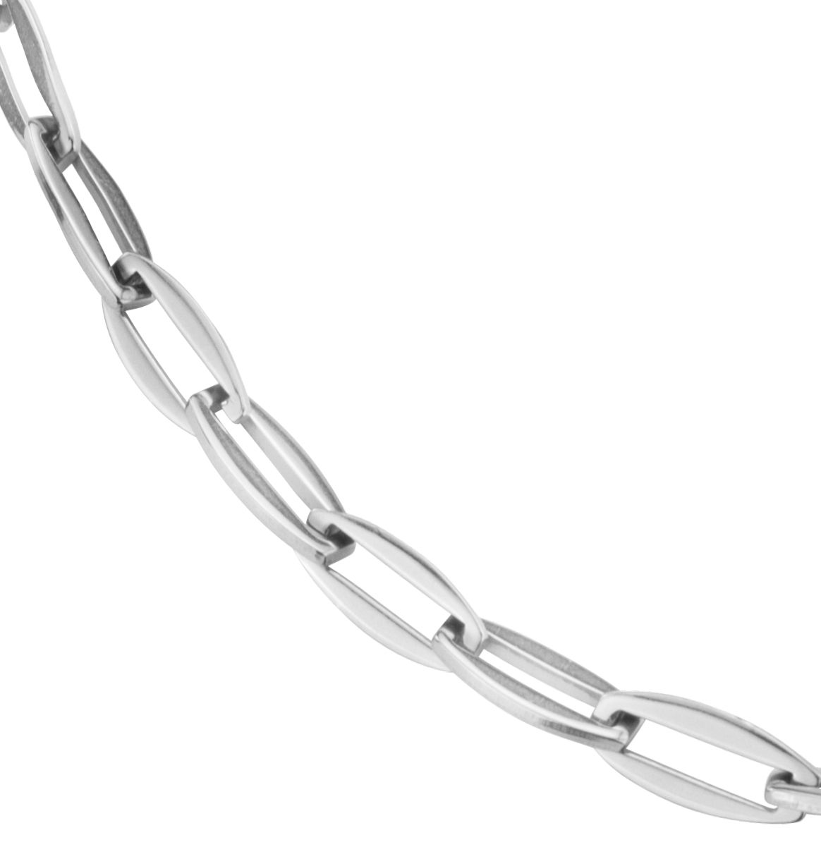 The sleek design and larger size make this stylish necklce an eye-catcher that goes with any outfit. The Traveller stainless steel neckace consists of flattened links and has a length of 45 centimetres. Complete the look with the matching bracelet!