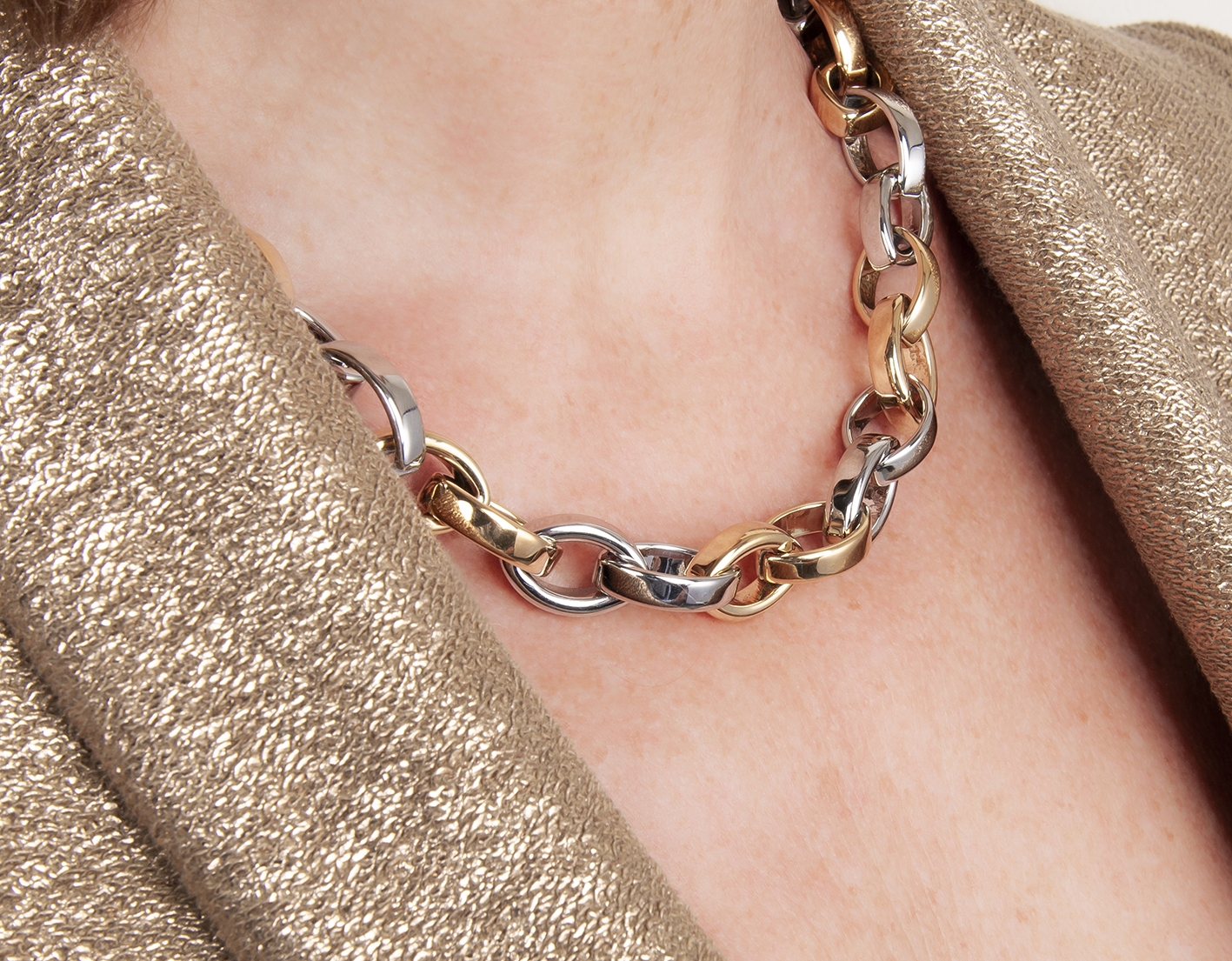 Traveller Necklace - Stainless Steel - Bicolor - Links - 52 cm