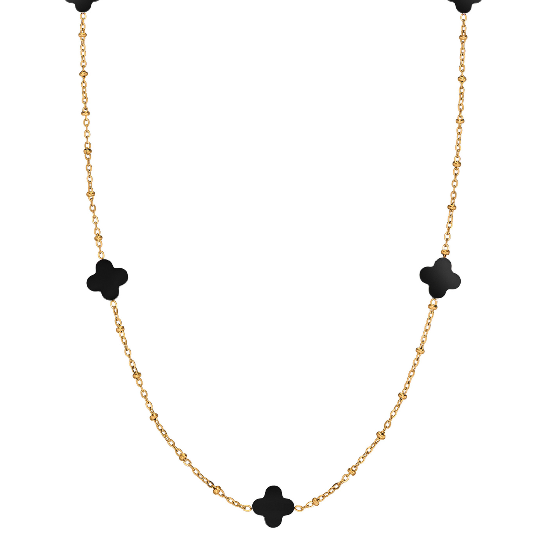 Traveller Necklace - Stainless Steel - Gold Plated - Black - Flower - 10mm - 90 cm