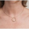 A unique design by Traveller. This gold plated necklace has a pendant with a spherical structure in the shape of a circle containing a genuine freshwater pearl. The pendant has a diameter of 2.5 centimetres and the necklace weighs 4 grams. The stainless steel chain is adjustable, so you can choose the length you want to wear it (45 or 50 centimetres).