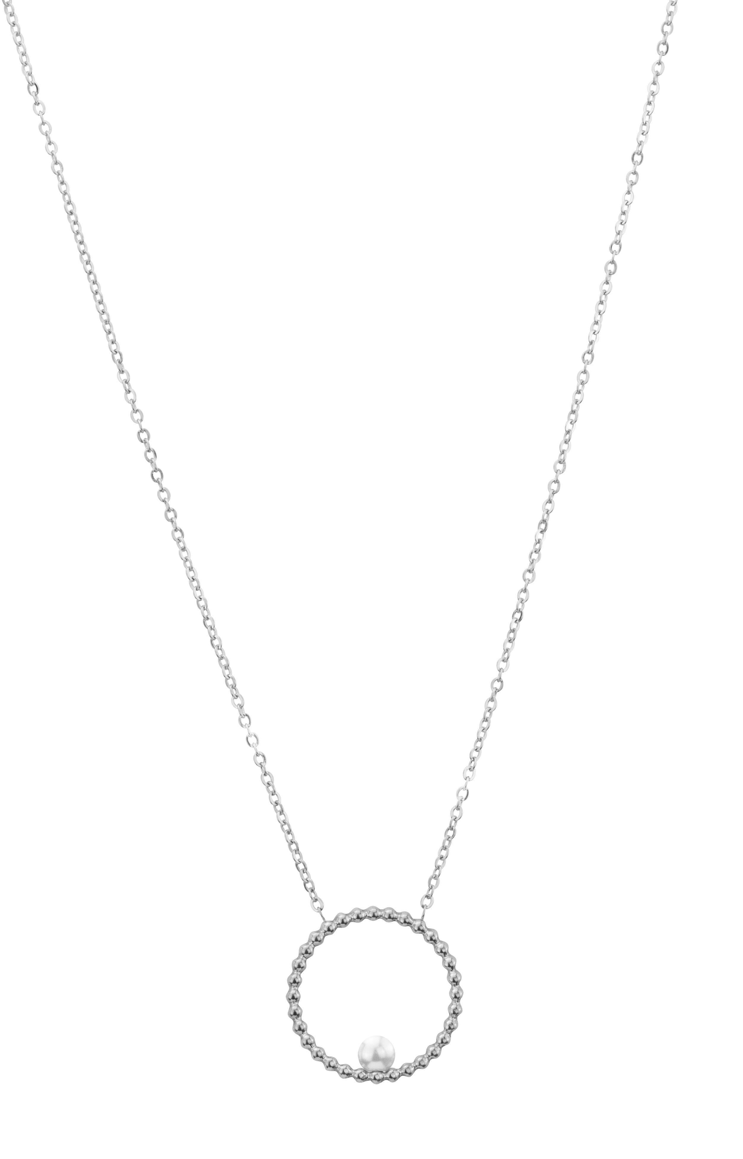 Traveller Necklace - Stainless Steel - Silver Coloured - Freshwater Pearl - 4 mm - Pendant 25 mm - 45+5 cm