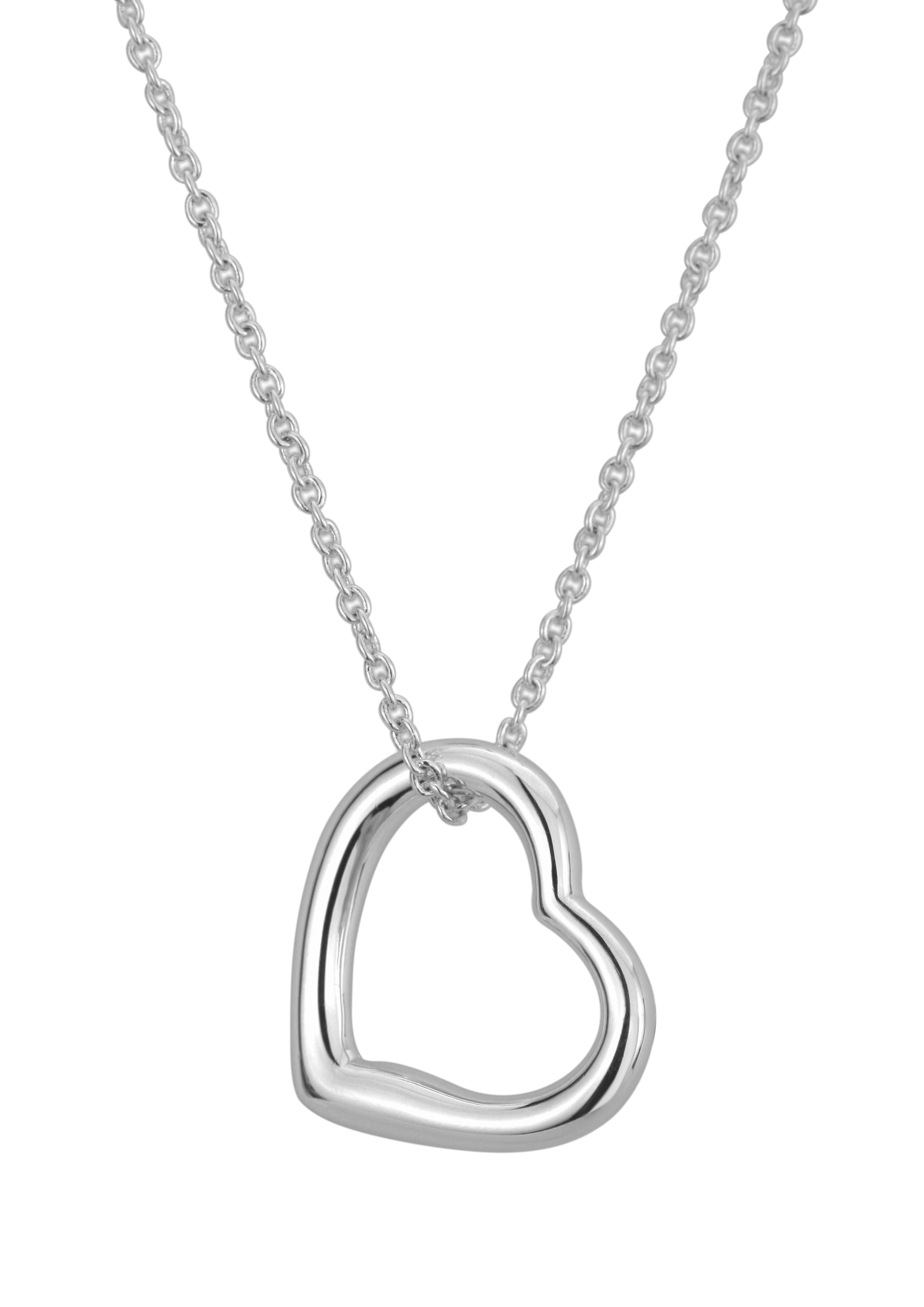Traveller Necklace with Pendant - Heart - Silver Colured - Platinuim Plated - 20x24mm - 38+3+3cm