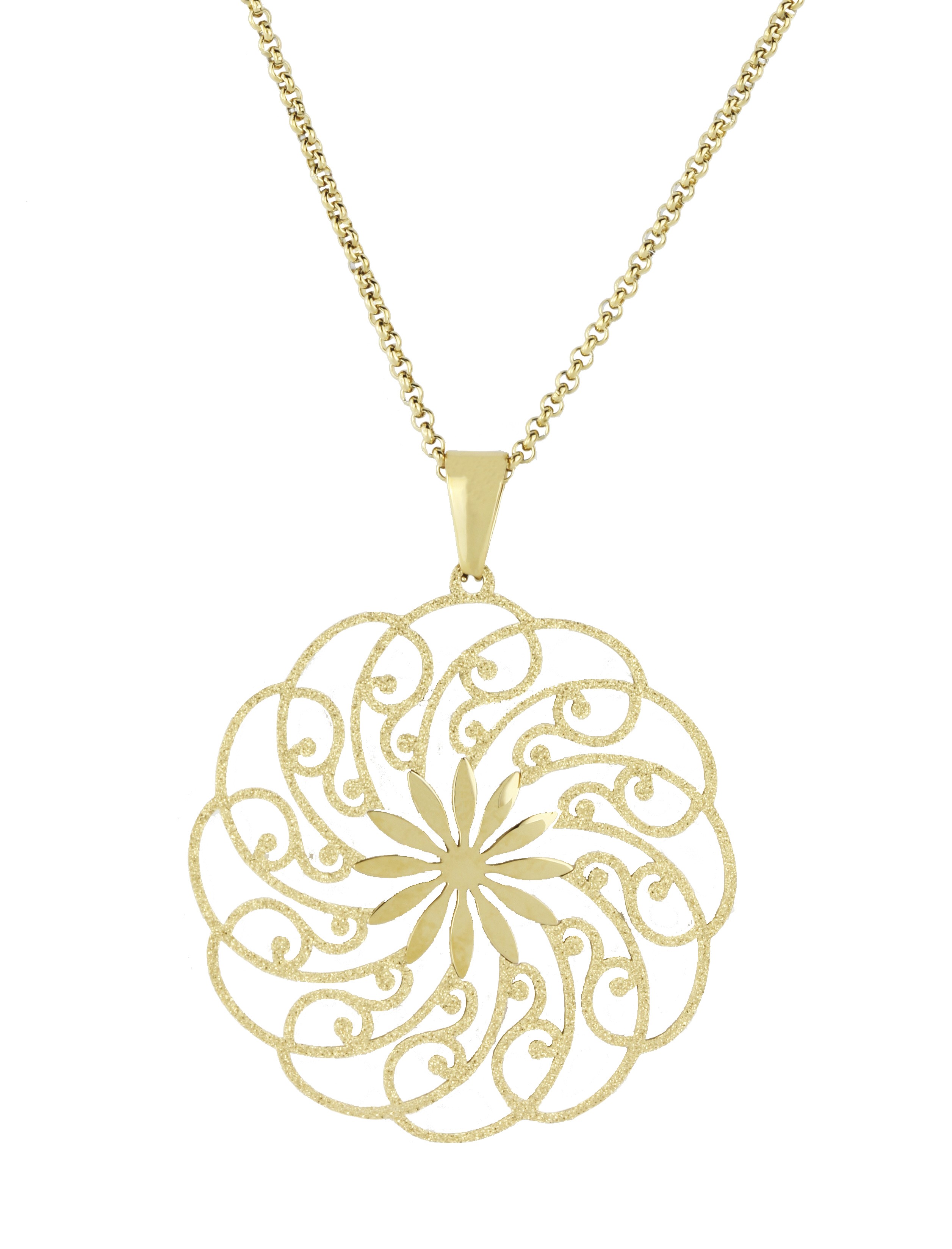 Traveller Necklace with Pendant - Stainless steel - Gold Plated - Ornate Flower - Glitter effect - 50-60 cm