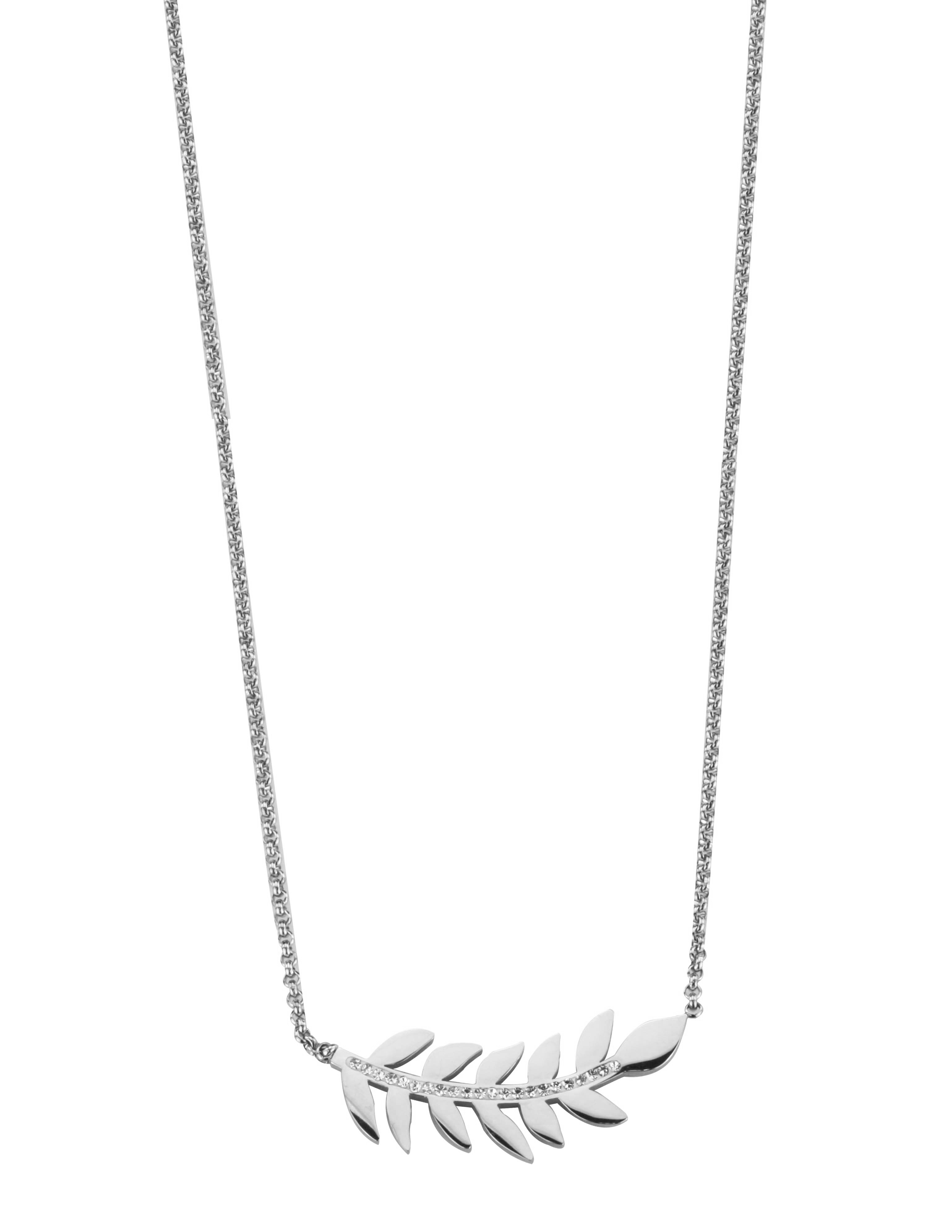 Traveller Necklace with Pendant - Stainless Steel - Twig with Leaves - Crystals - 46cm
