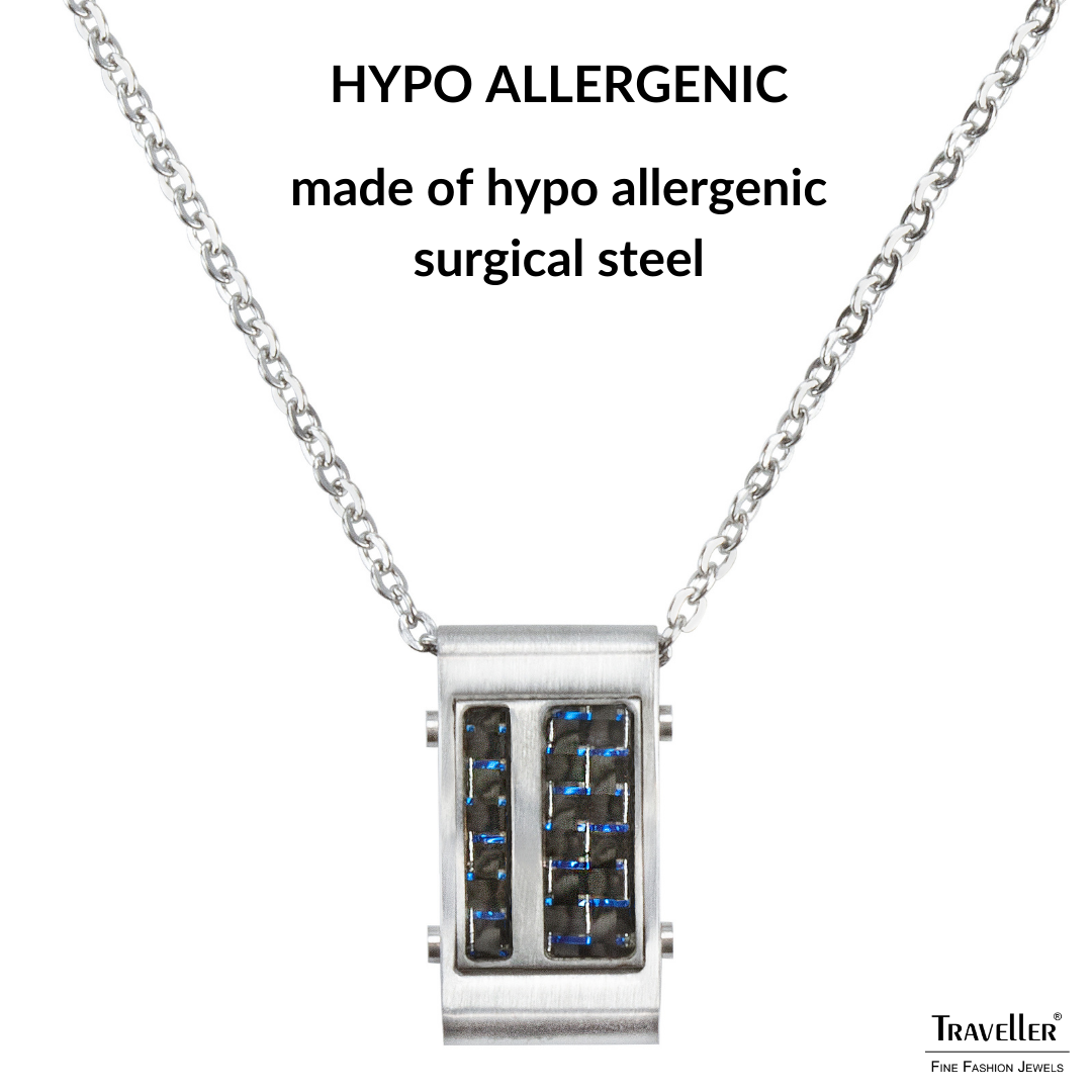 Traveller Necklace - Men - Carbon & Stainless Steel - Blue - 55 cm long