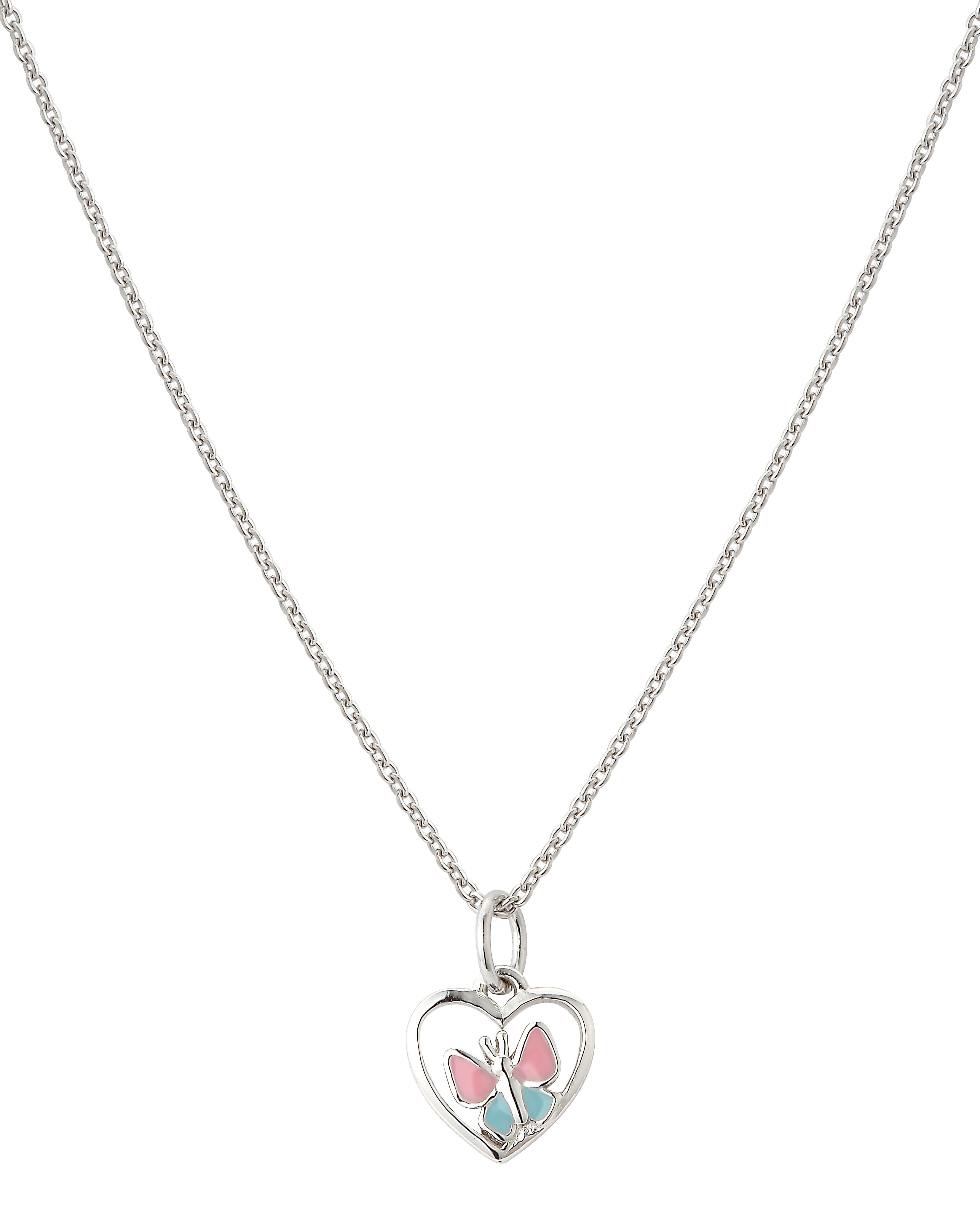 Traveller Pendant with Necklace - Girls - Butterfly Fluture - Pink & Bleu - Heart - Sterling Silver 925
