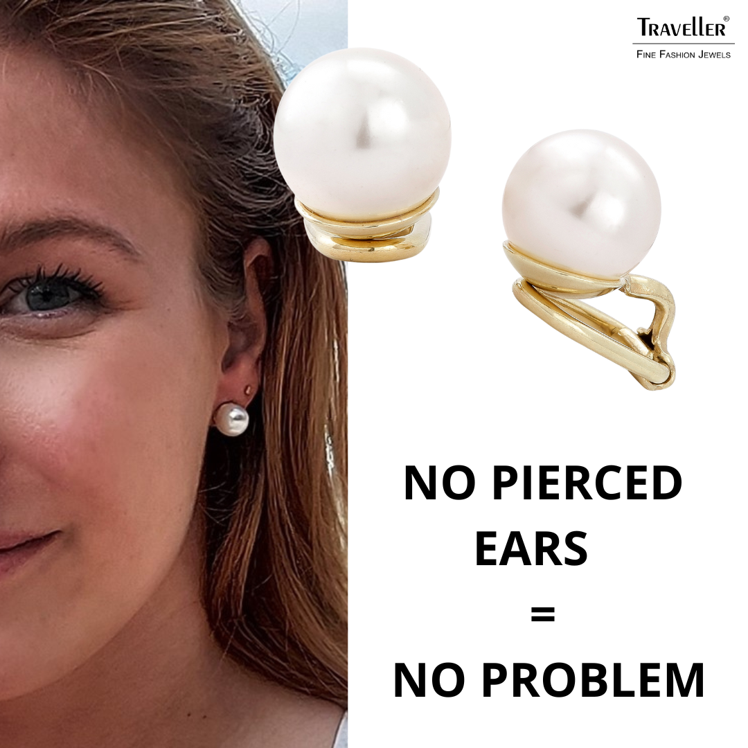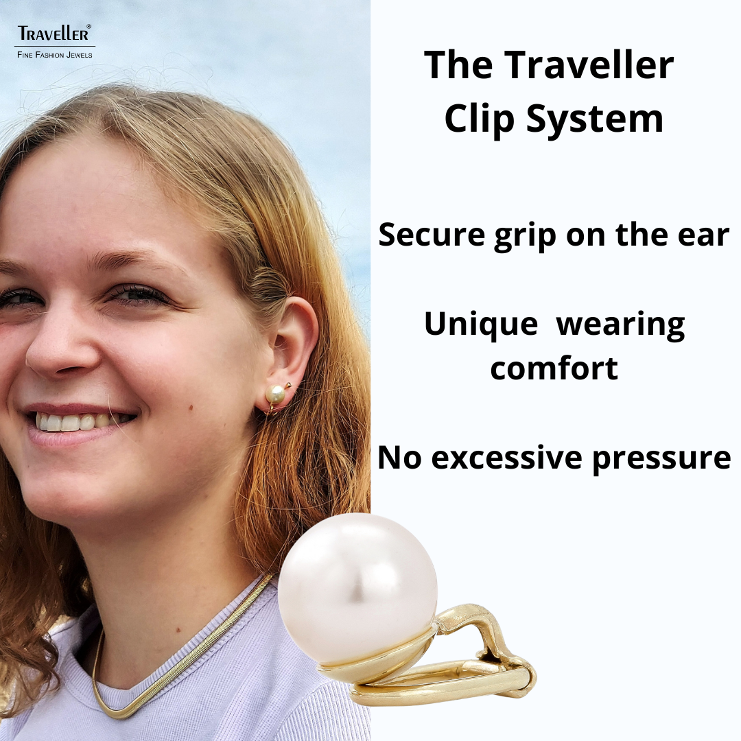 The classic pearl earring stands for beauty and elegance. These 22 carat gold plated pearl clip-on earrings by Traveller (core material: metal) feature high-quality imitation pearls from Mallorca. The cream-coloured pearls have a diameter of 10 millimetres; the earrings measure 10 x 15 millimetres in total. Thanks to Traveller's unique fastening system, these ear clips are very comfortable, light and safe to wear.