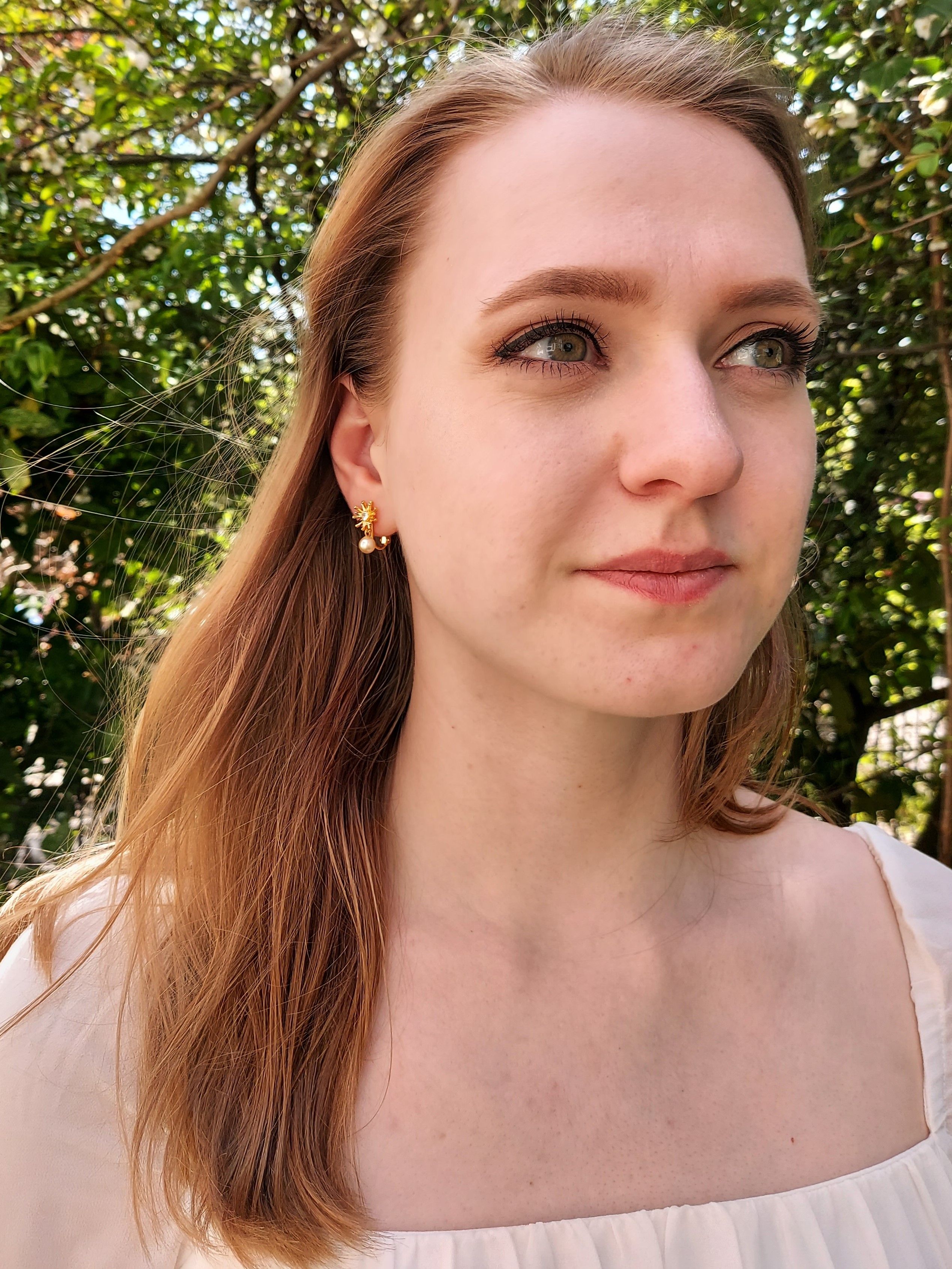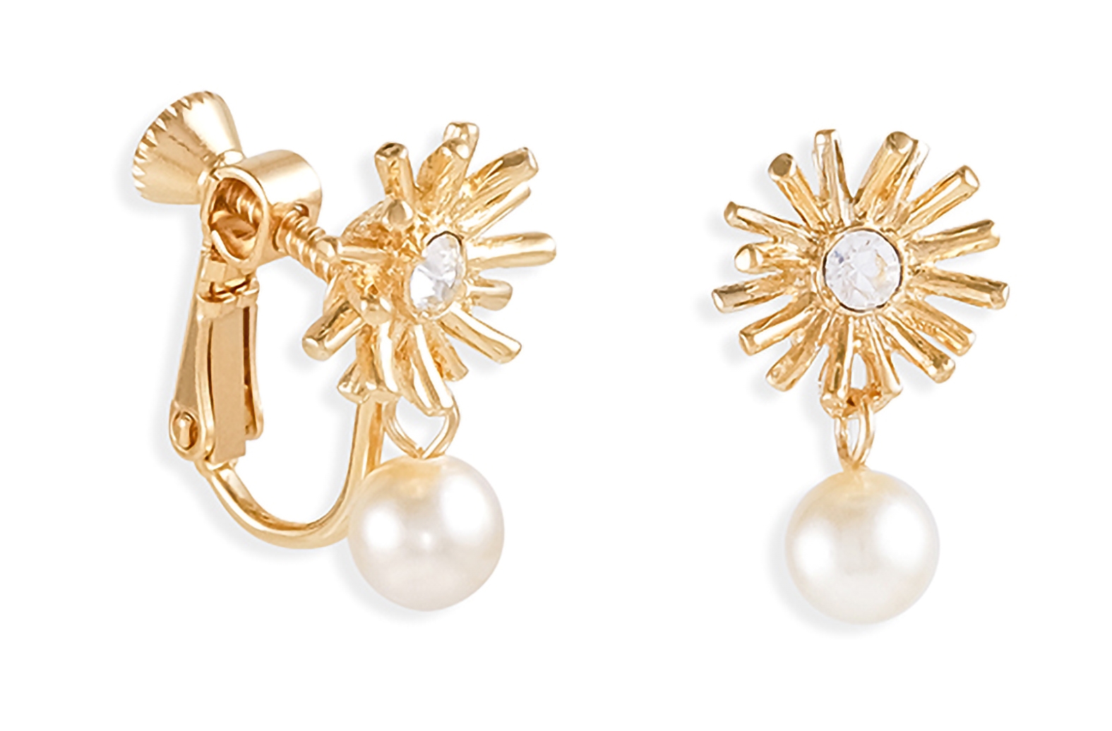 Radiate like the sun with these summery clip-on earrings from Grossé! A white high-quality imitation pearl hangs from a sun whose centre features a Preciosa crystal. The clip-on earrings are coated with a protective layer of platinum and measure around 20 x 10 millimetres.