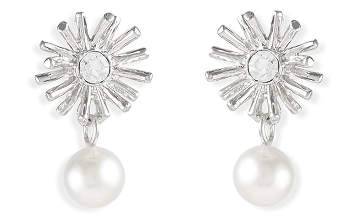 Radiate like the sun with these gorgeous clip-on earrings by Grossé! These summery earrings consist out of sun with a Preciosa crystal as centre, underneath hangs a shiny high-quality imitation pearl. The clip-on earrings have a protective layer of platinum and measure around 20 x 10 millimetres.