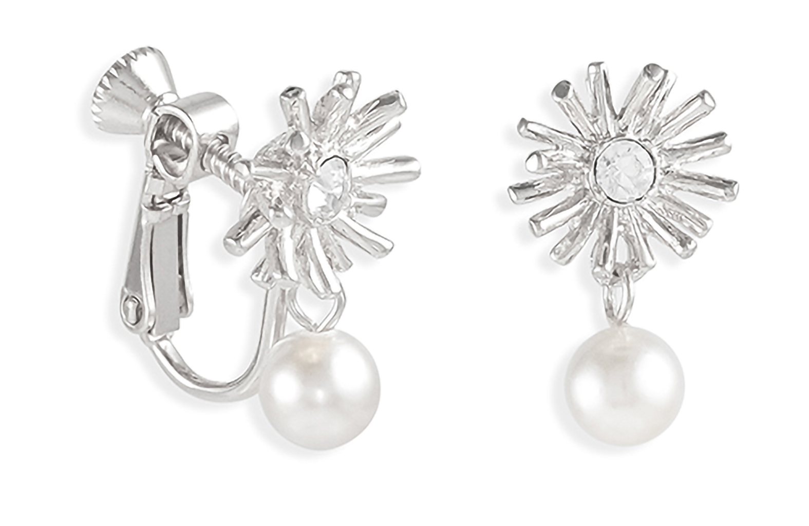Grossé Clip-on Earrings - Pendants - Silver Coloured - Pearl - White - Crystals - 20x10 mm - Platinum Plated