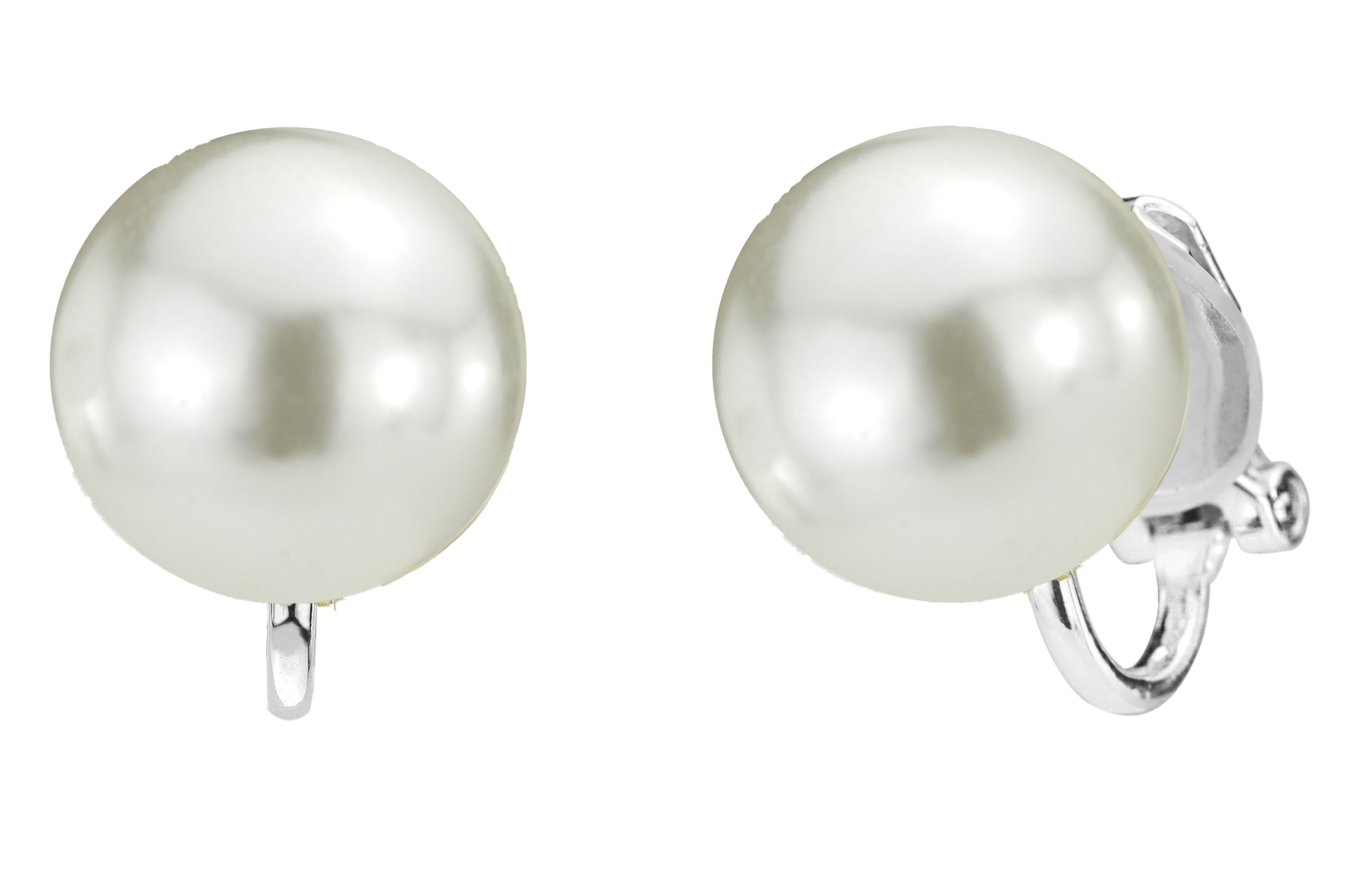 Osira Cli-on Earrings - Silver Coloured - Pearls - 12 mm - White - Platinum Plated