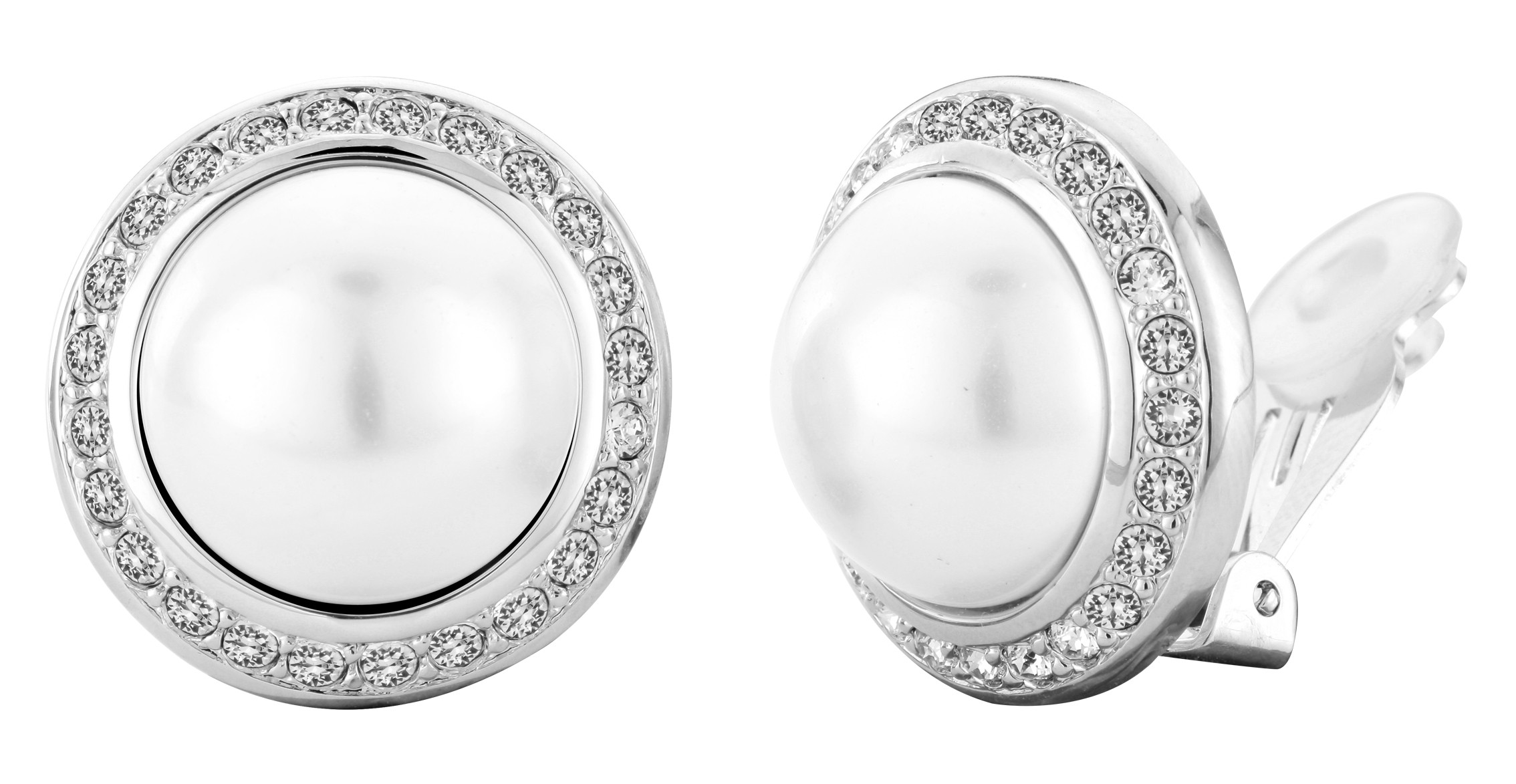 Grossé Clip-on Earrings - Pendants - Silver Coloured - Pearl - White - Crystals - 20x10 mm - Platinum Plated €73.00