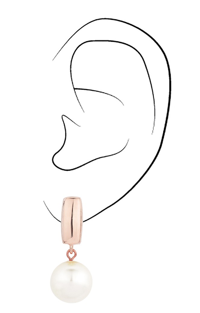 These pearl clip-on earrings from Traveller exude purity, elegance and beauty. A high-quality imitation pearl from Mallorca with a diameter of 12 millimetres hangs from the 18-carat rosé gold plated earrings. The clip-on earrings measure a total of 30 x 12 millimetres and weigh 5 grams each. Thanks to Traveller's unique fastening system, the clip-on earrings are very comfortable, light and safe to wear.