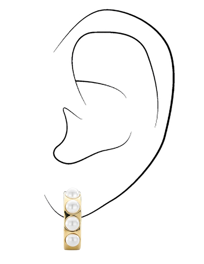 Traveller Clip-on Earrings - Gold Plated - Pearls - 4mm - White - 17x5mm