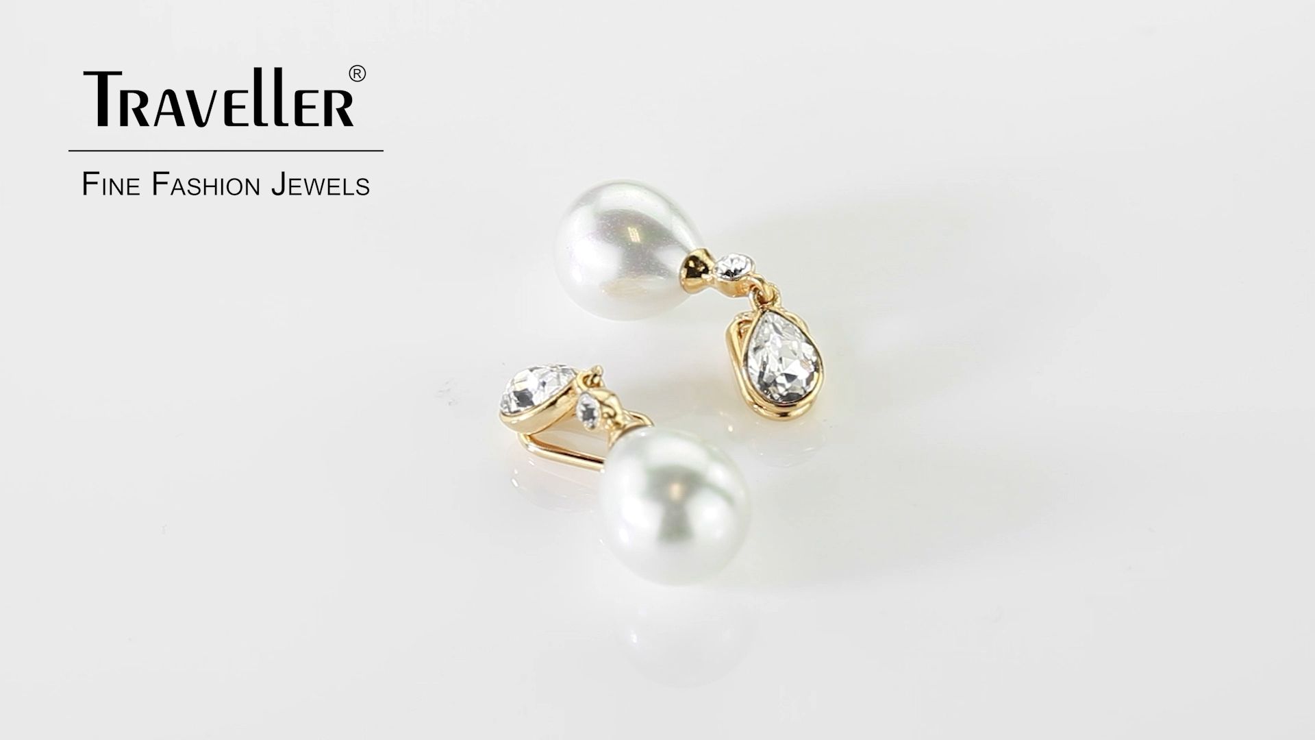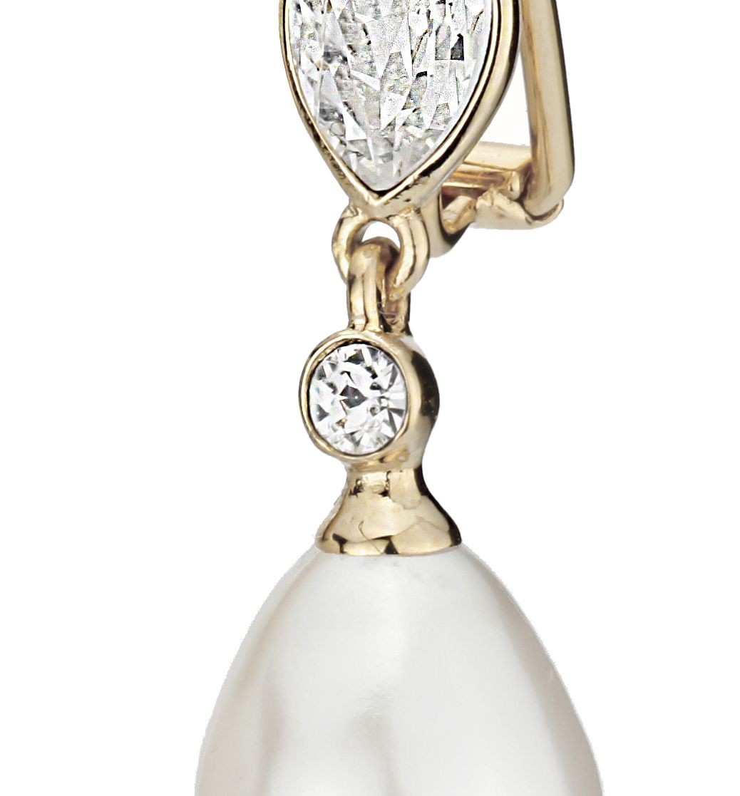 Traveller Clip-on Earrings - Pearl Drops - 12x15 mm - White - Preciosa Crystals - 22ct Gold plated - 32x12 mm